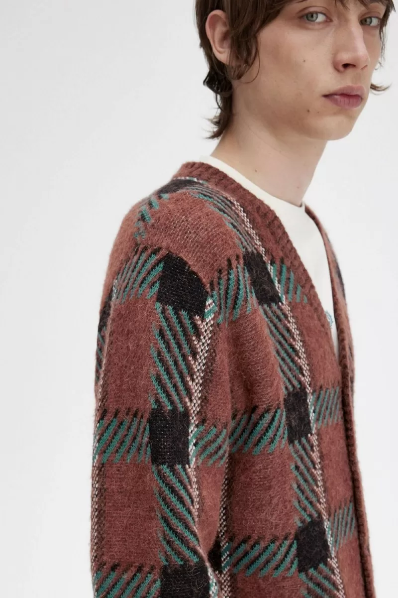 Fred Perry Glitch Tartan Men’s Cardigan Whisky Brown NSGJZ2403
