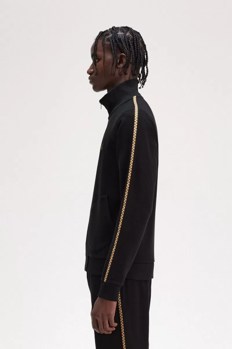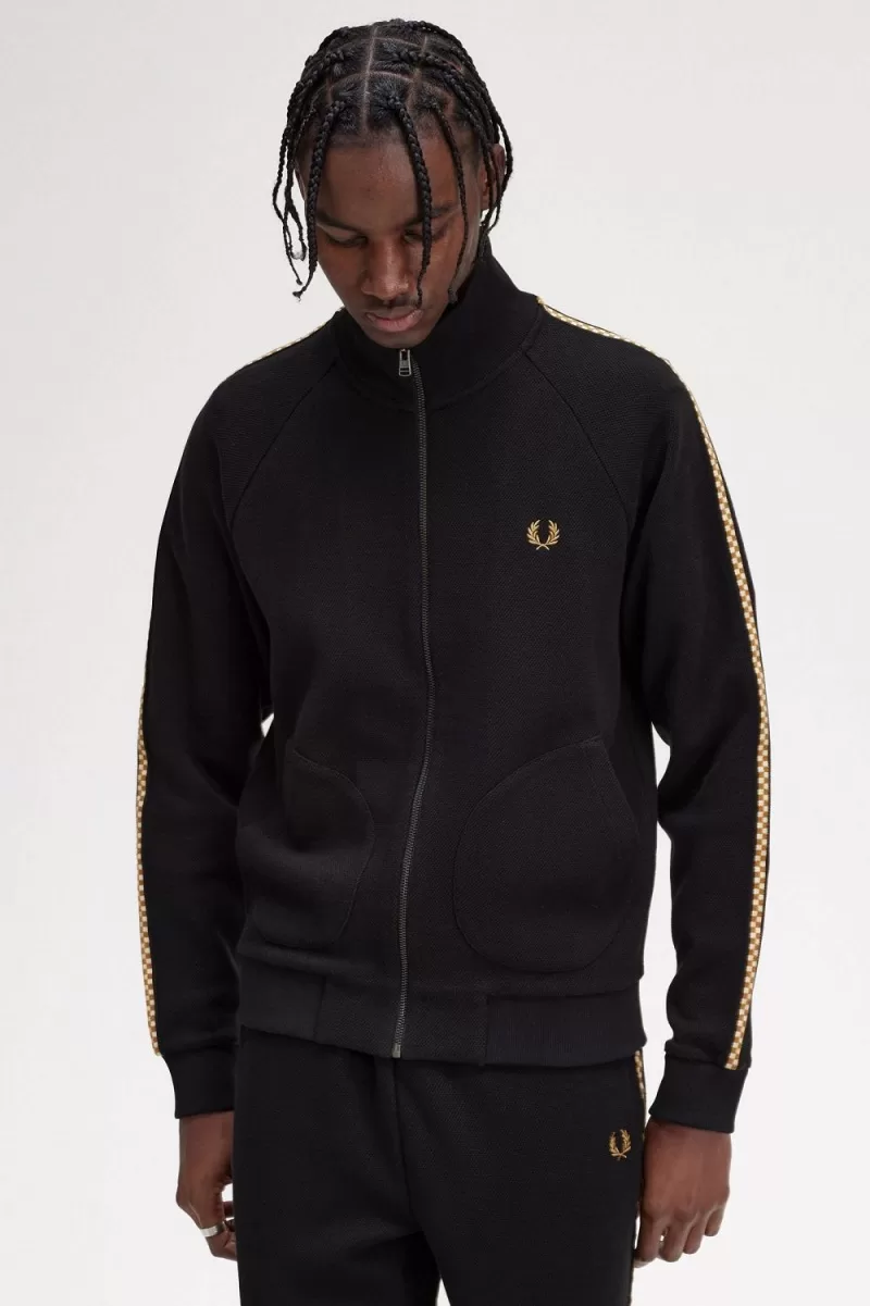 Fred Perry Chequerboard Tape Men’s Jackets Black CBUZI5917