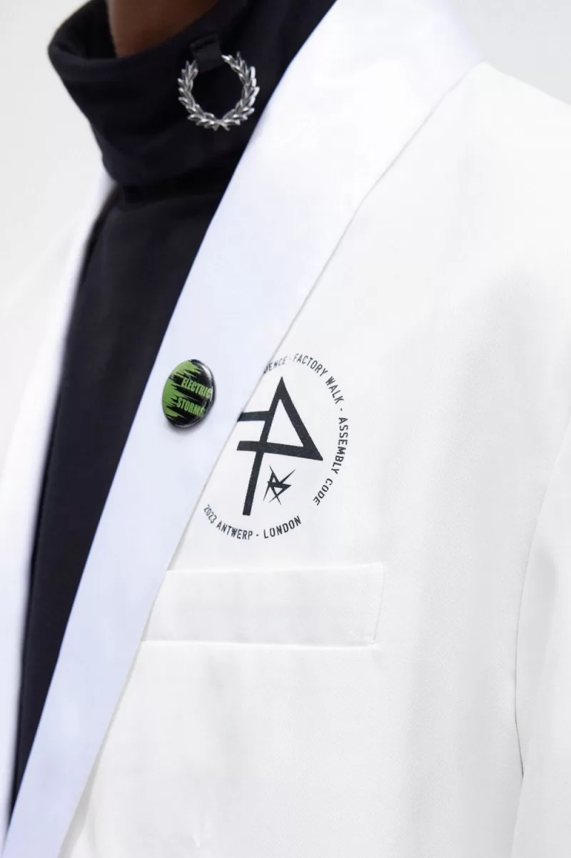 Home Men Clothing Jackets Fred Perry Shawl Collar Blazer Men’s Jackets White PNQGS1403