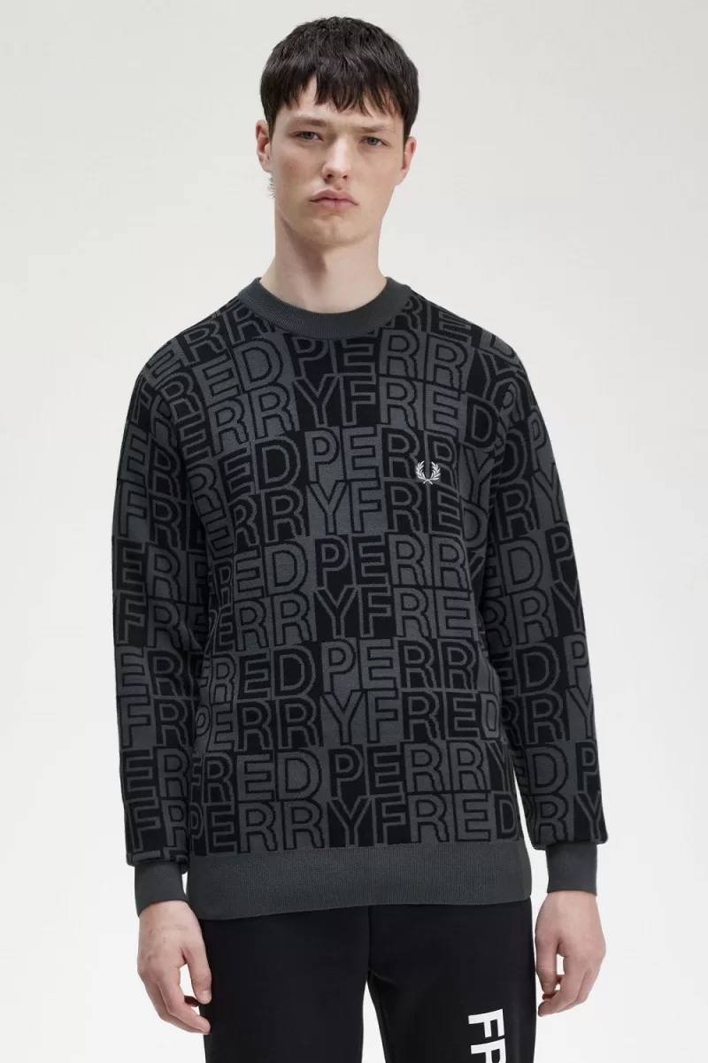 Fred Perry Block Graphic Men’s Jumper Gunmetal FBNIP5694