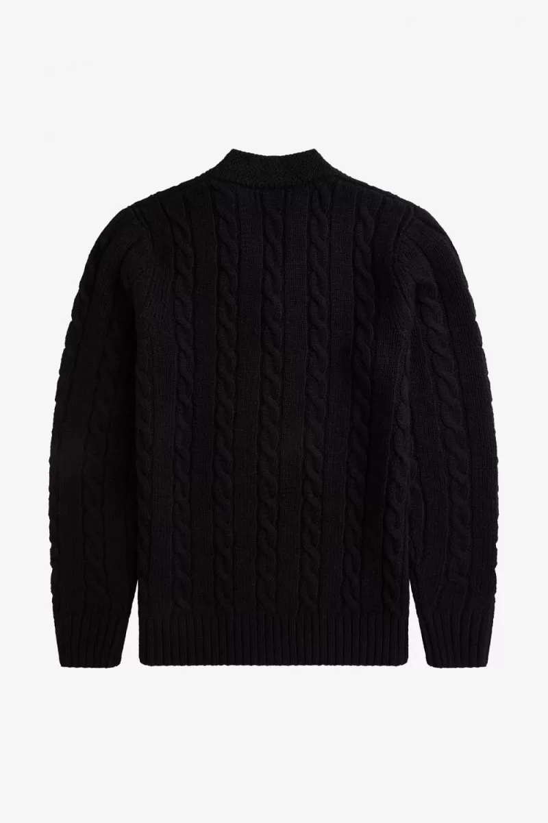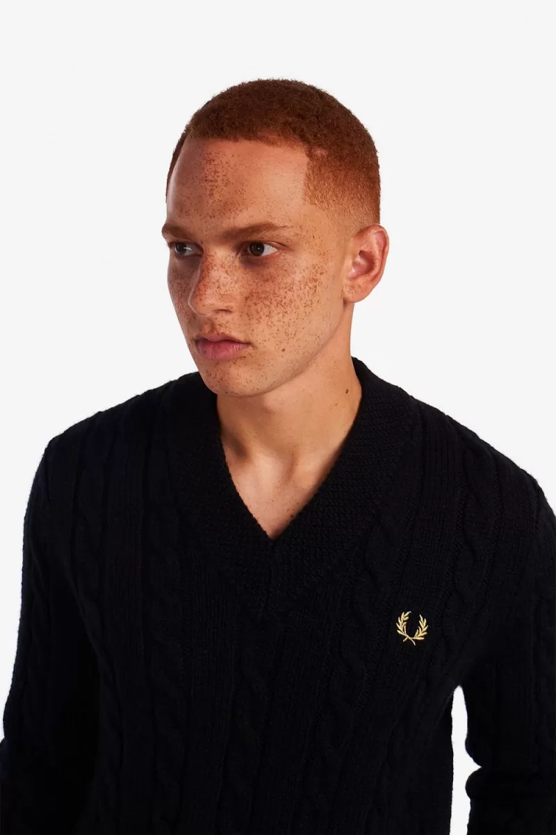 Fred Perry Cable Knit V Neck Men’s Jumper Black GYZEO0143
