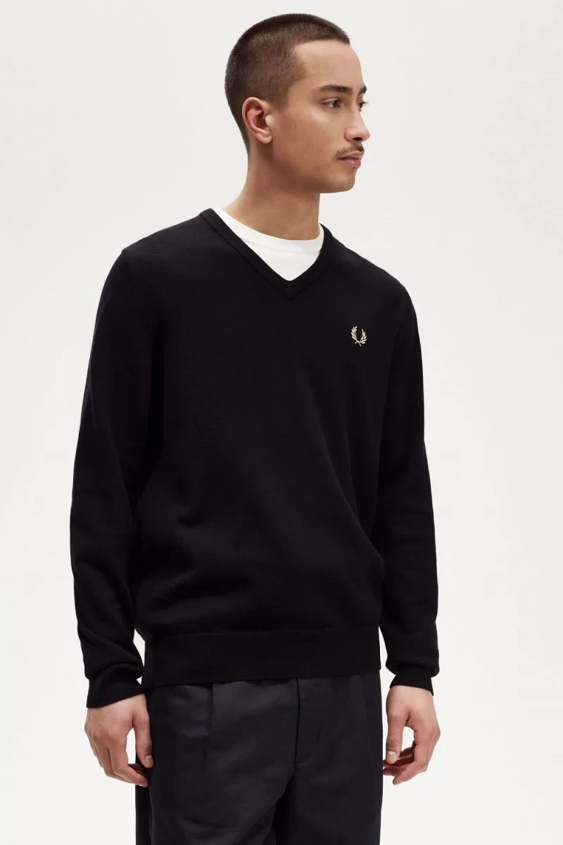 Fred Perry Classic V-Neck Men’s Jumper Black YCVQP0698