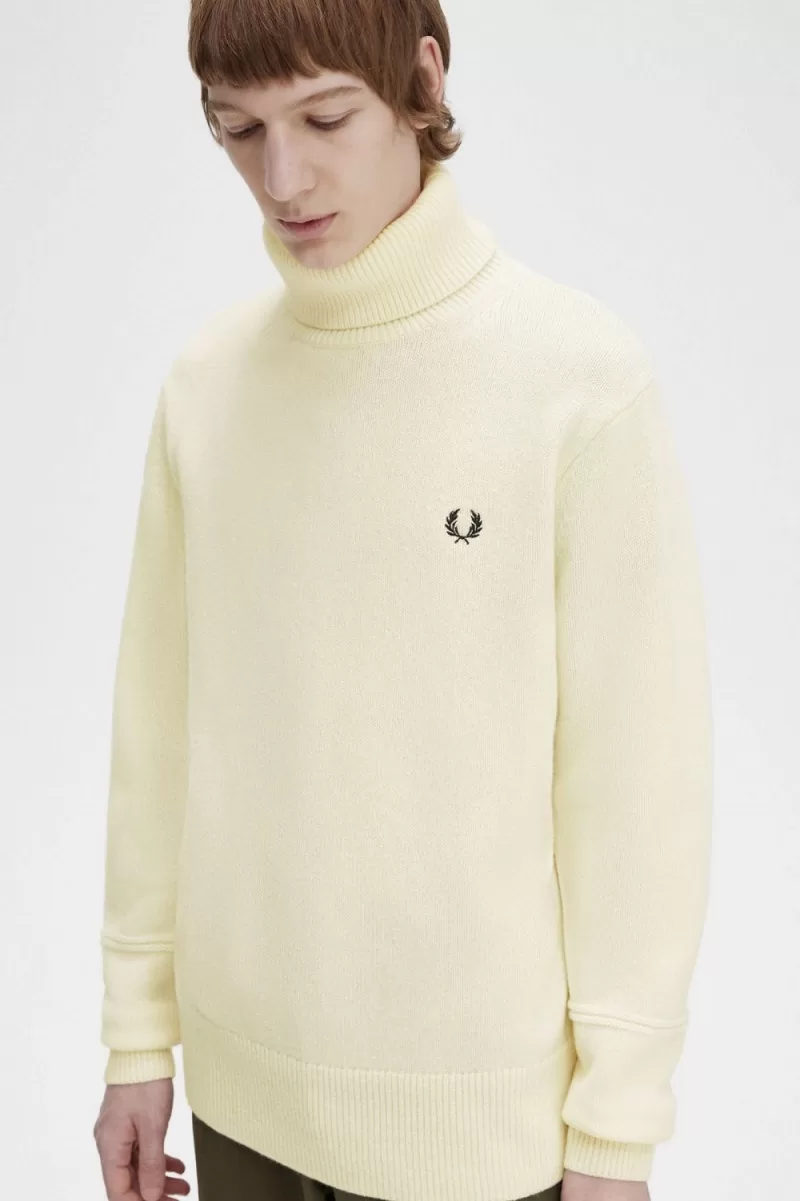 Fred Perry Knitted Roll Neck Men’s Jumper Beige VUJLQ3016