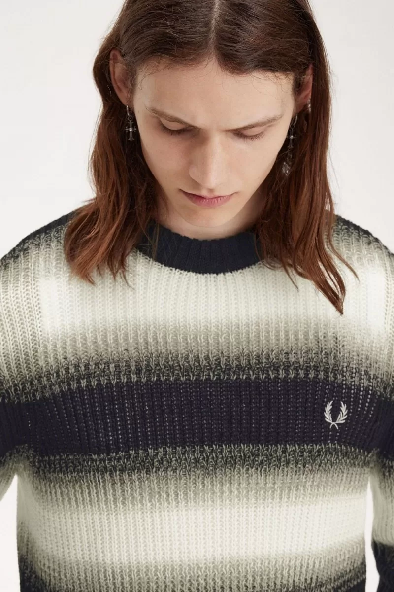 Home Men Clothing Jumper Fred Perry Striped Open Knit Men’s Jumper Black YZPGC0138