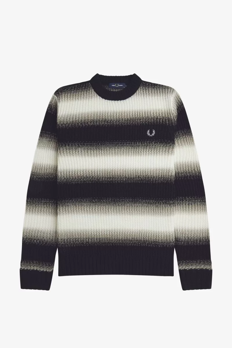 Fred Perry Striped Open Knit Men’s Jumper Black YZPGC0138