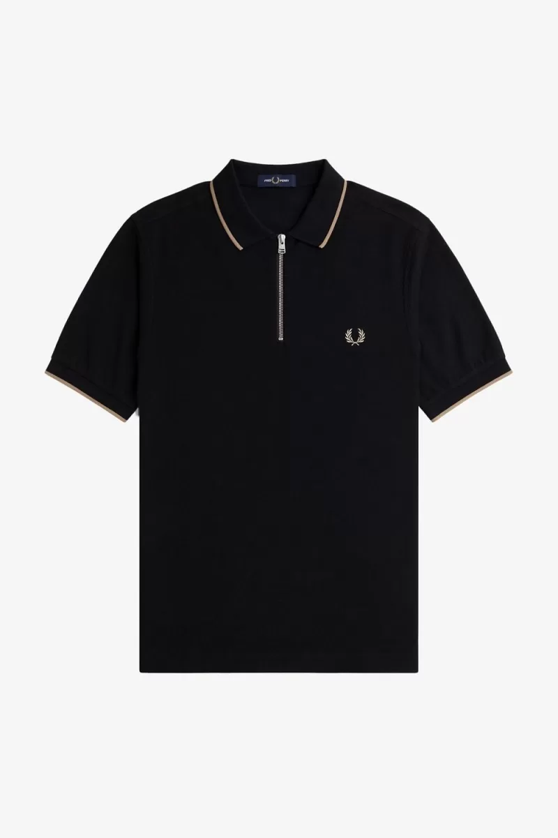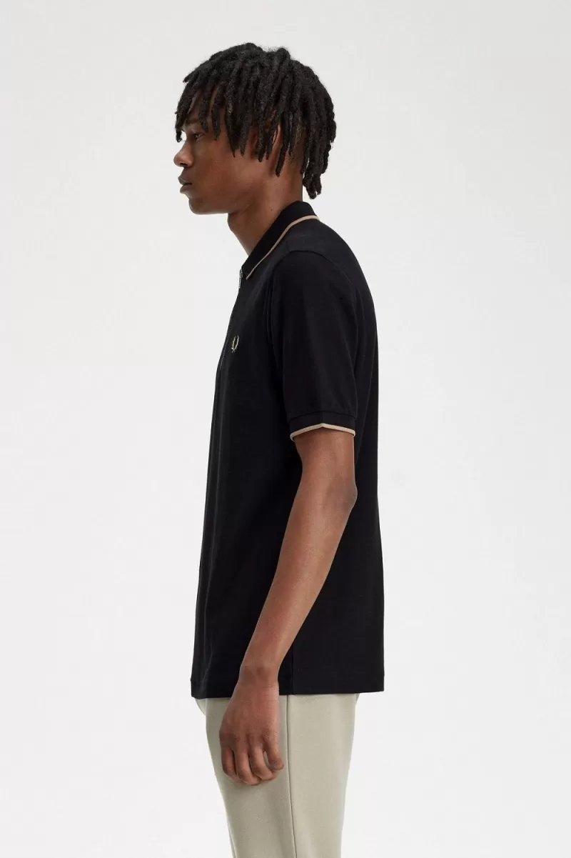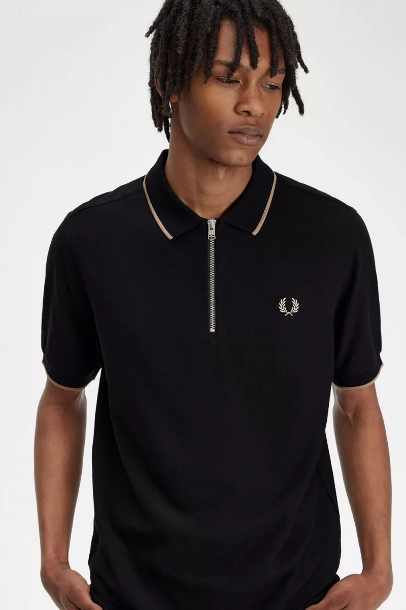 Fred Perry Crepe Pique Zip Neck Men’s Polo Shirt Black ANKMW6105