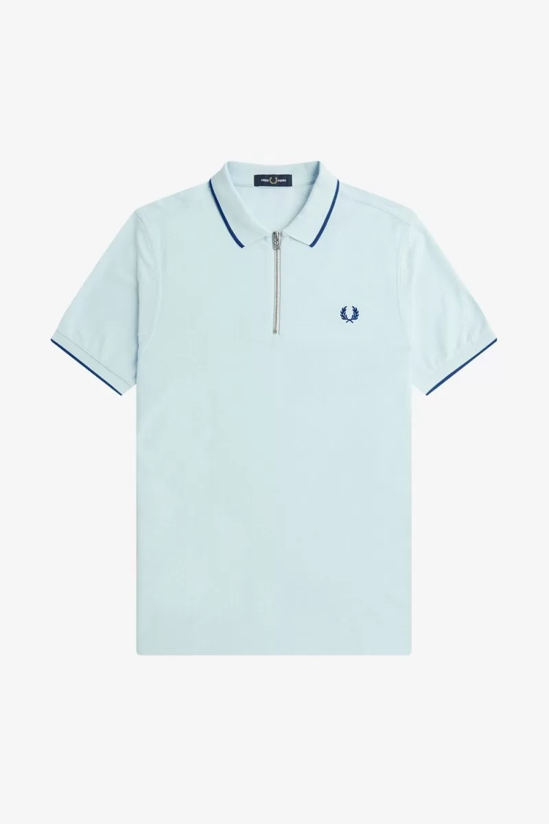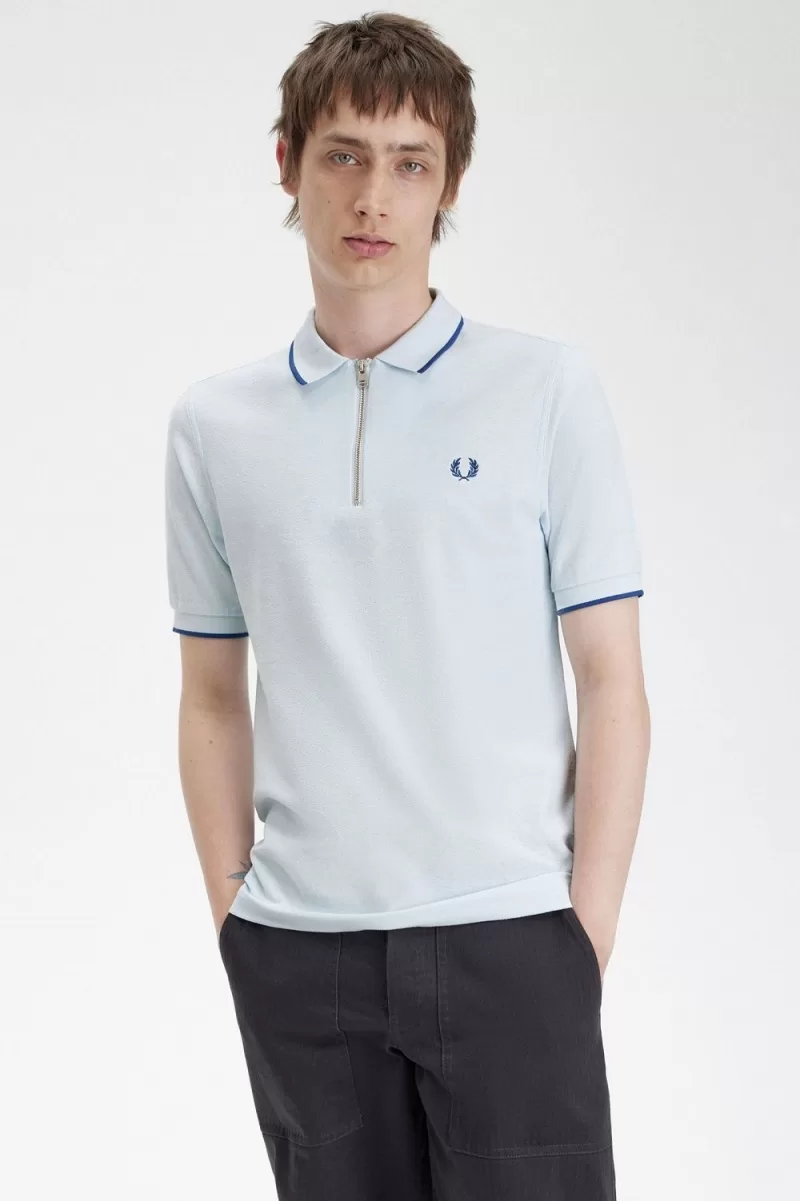 Fred Perry Crepe Pique Zip Neck Men’s Polo Shirt Light Aqua PCQBX9503