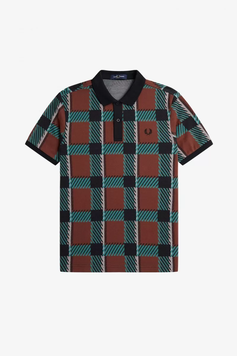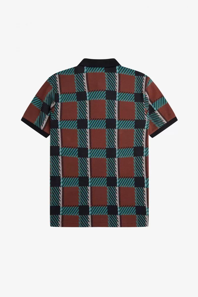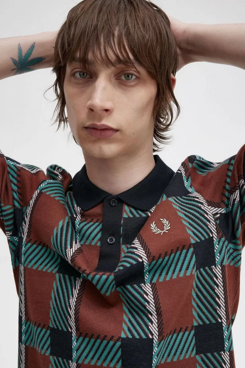 Fred Perry Glitch Tartan Men’s Polo Shirt Whisky Brown XIKEF2148