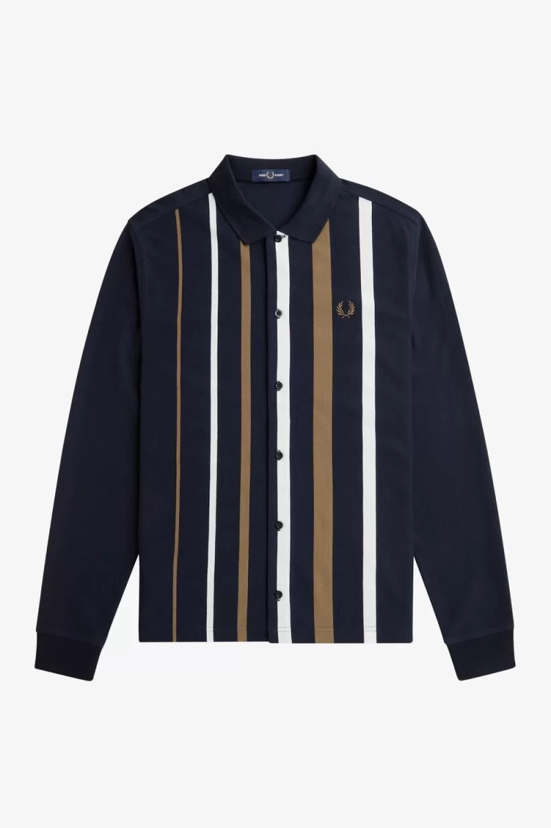 Home Men Clothing Polo Shirt Fred Perry Gradient Stripe Long Sleeve Men’s Polo Shirt Navy MDUXH3617