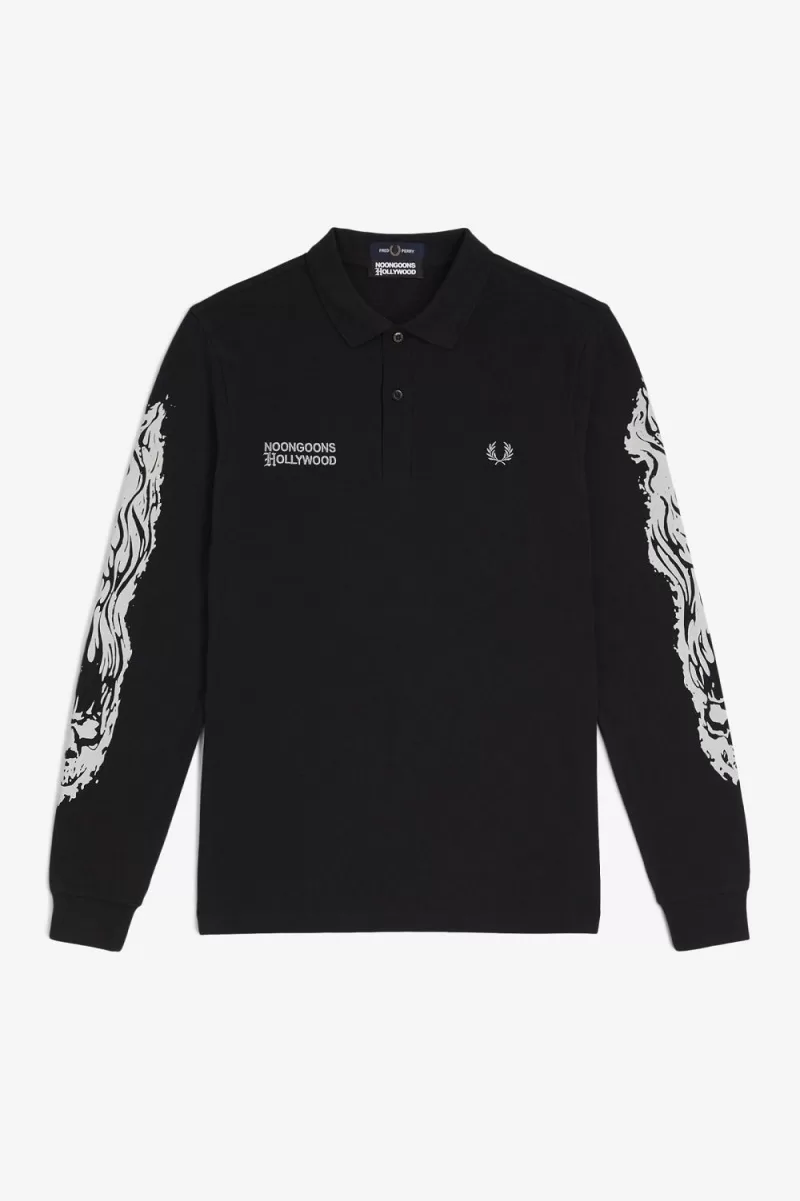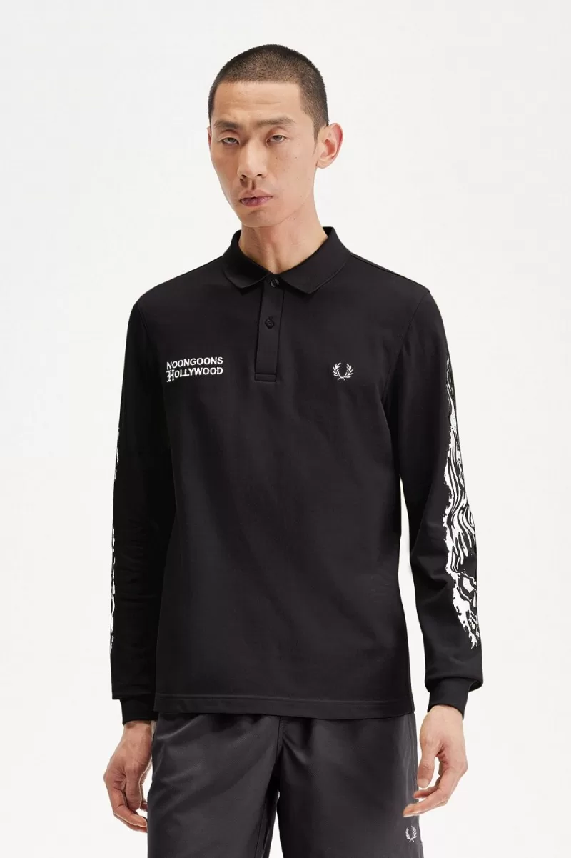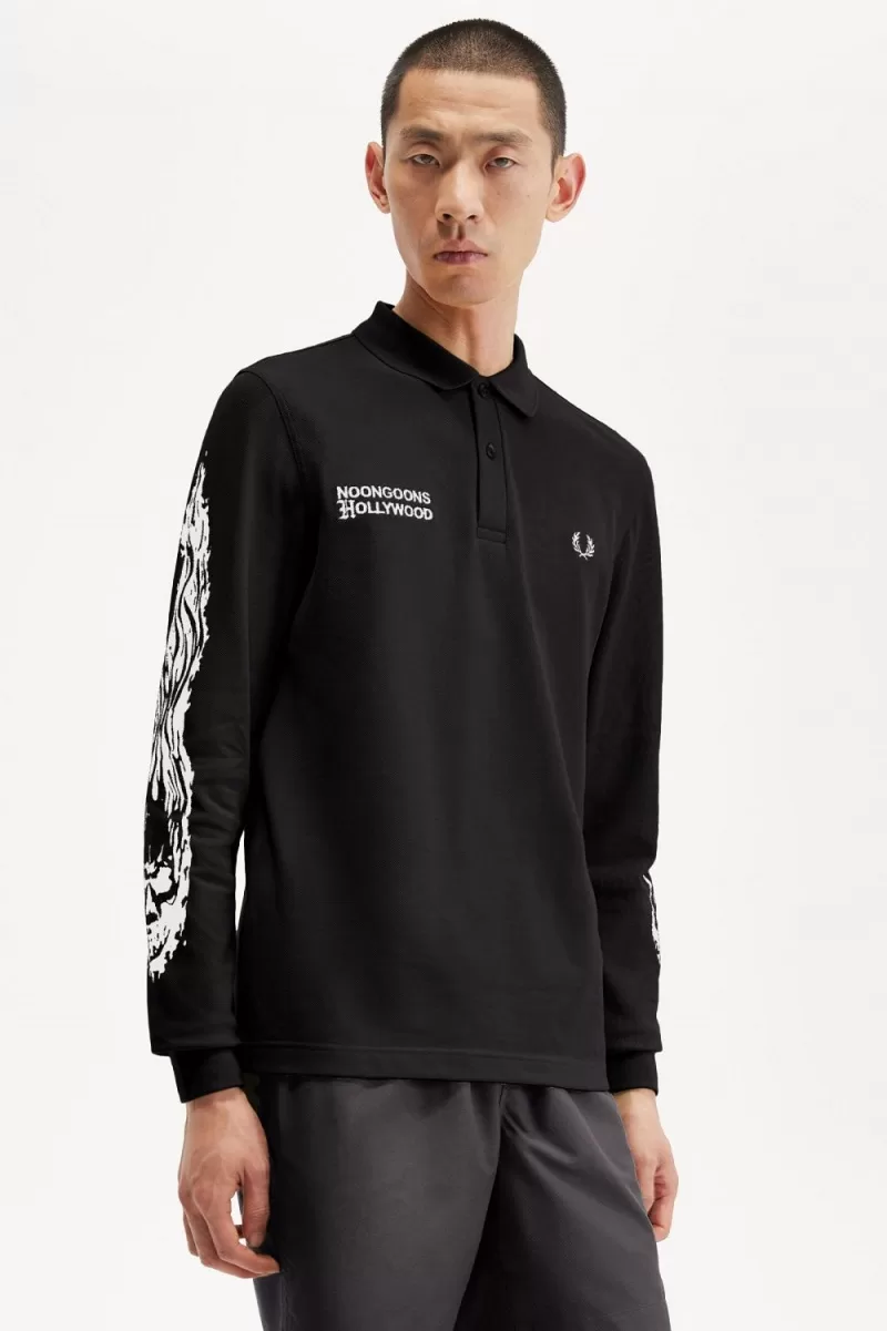 Fred Perry Noongoons Long Sleeve Graphic Men’s Polo Shirt Black AIRVU3176