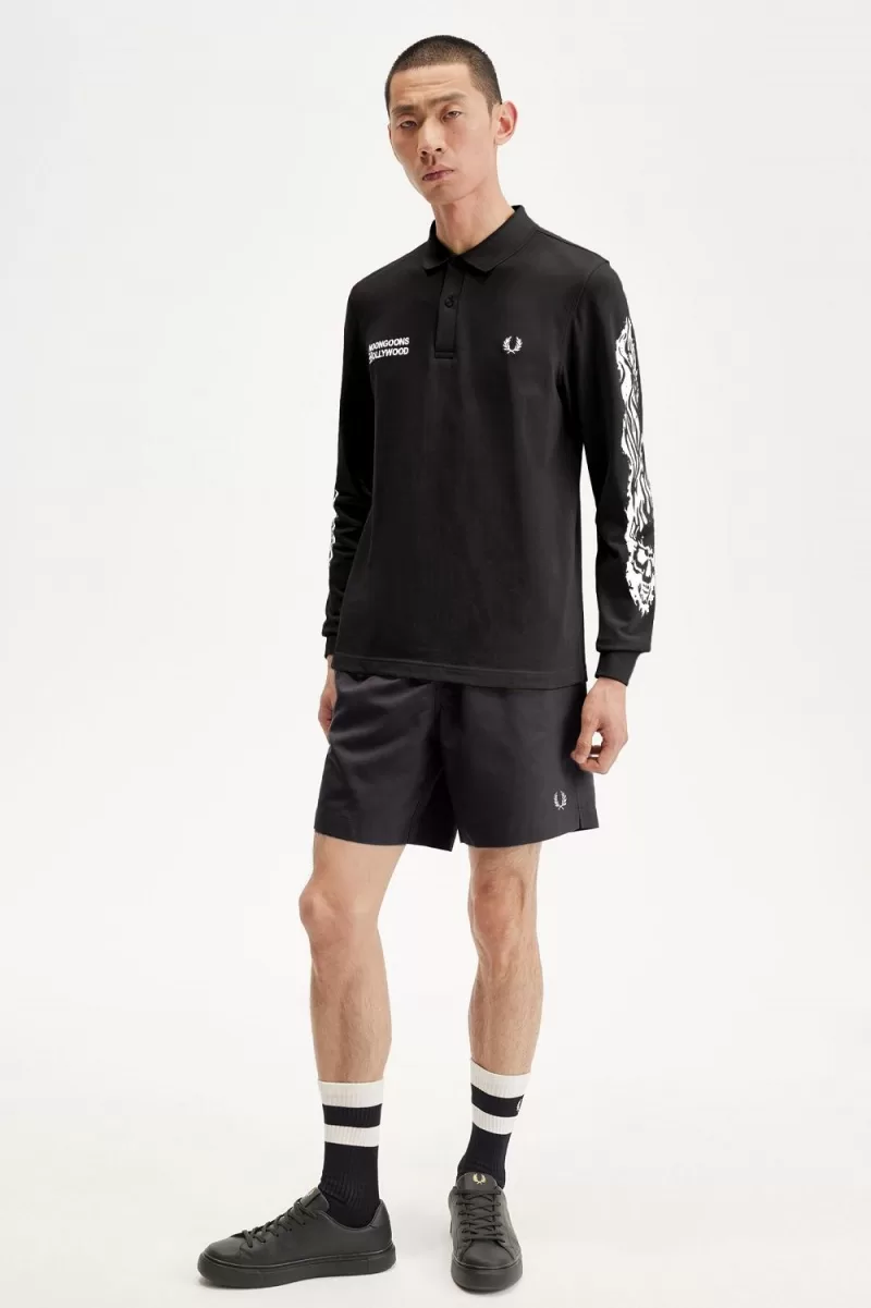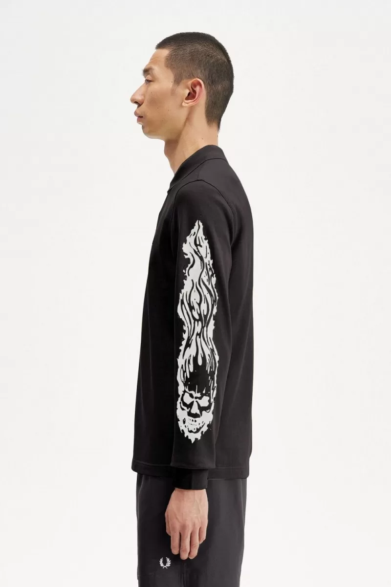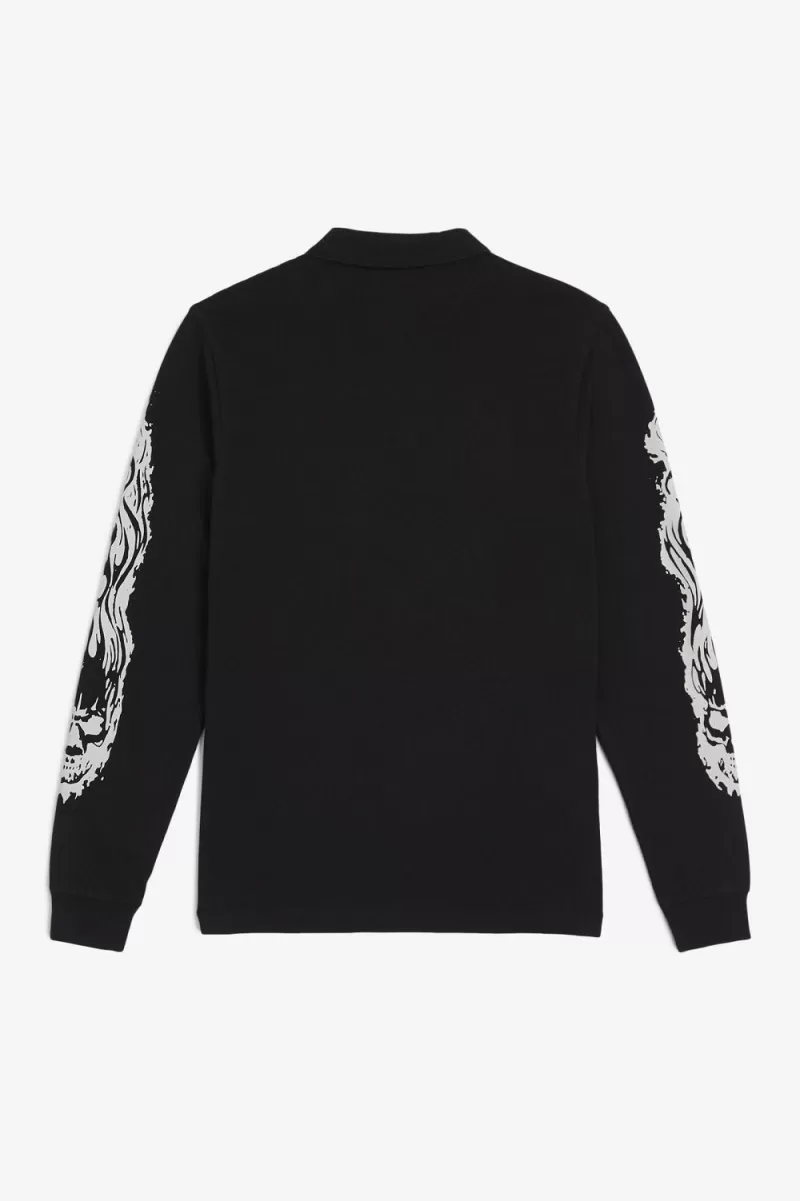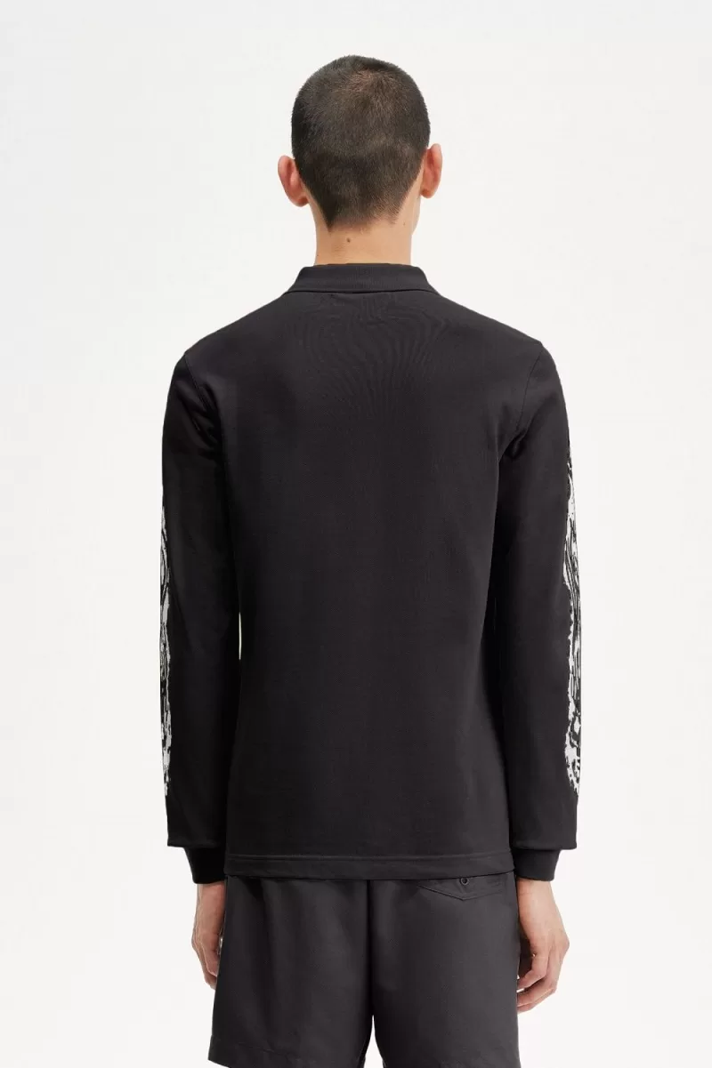 Fred Perry Noongoons Long Sleeve Graphic Men’s Polo Shirt Black AIRVU3176