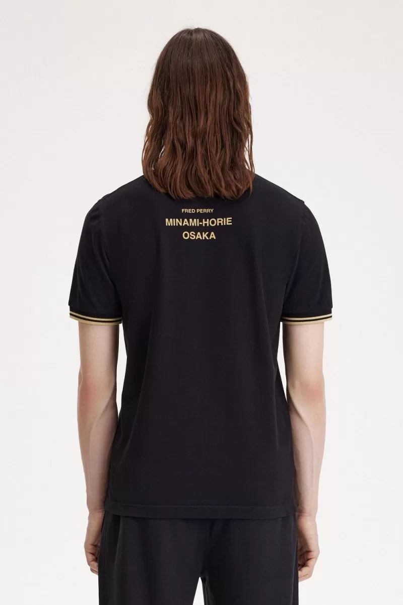 Fred Perry Osaka M12 Men’s Polo Shirt Black Champagne QDHTN6709