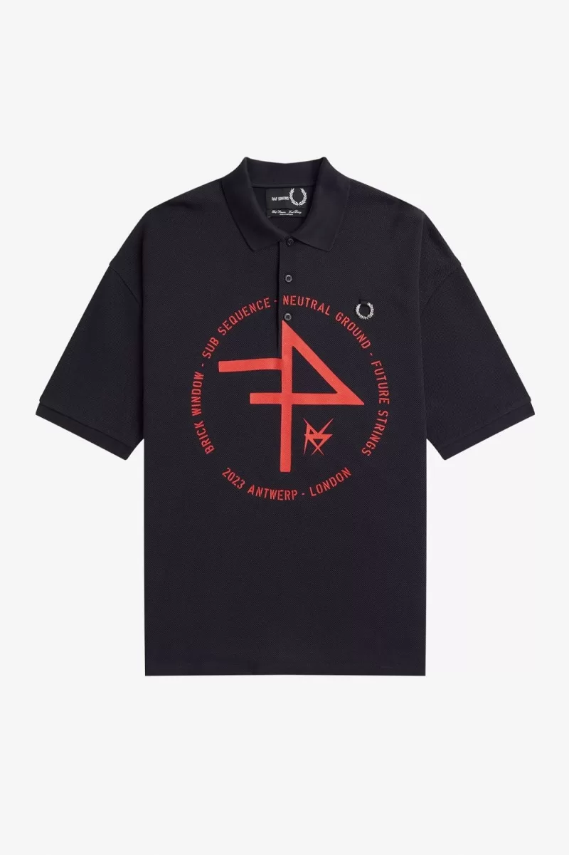 Fred Perry Oversized Printed Men’s Polo Shirt Navy Blue WAKHO9208