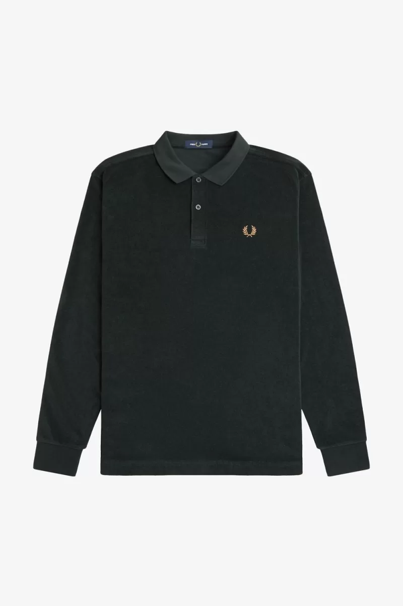 Home Men Clothing Polo Shirt Fred Perry Relaxed Towelling Men’s Polo Shirt Night Green ZBACQ2693