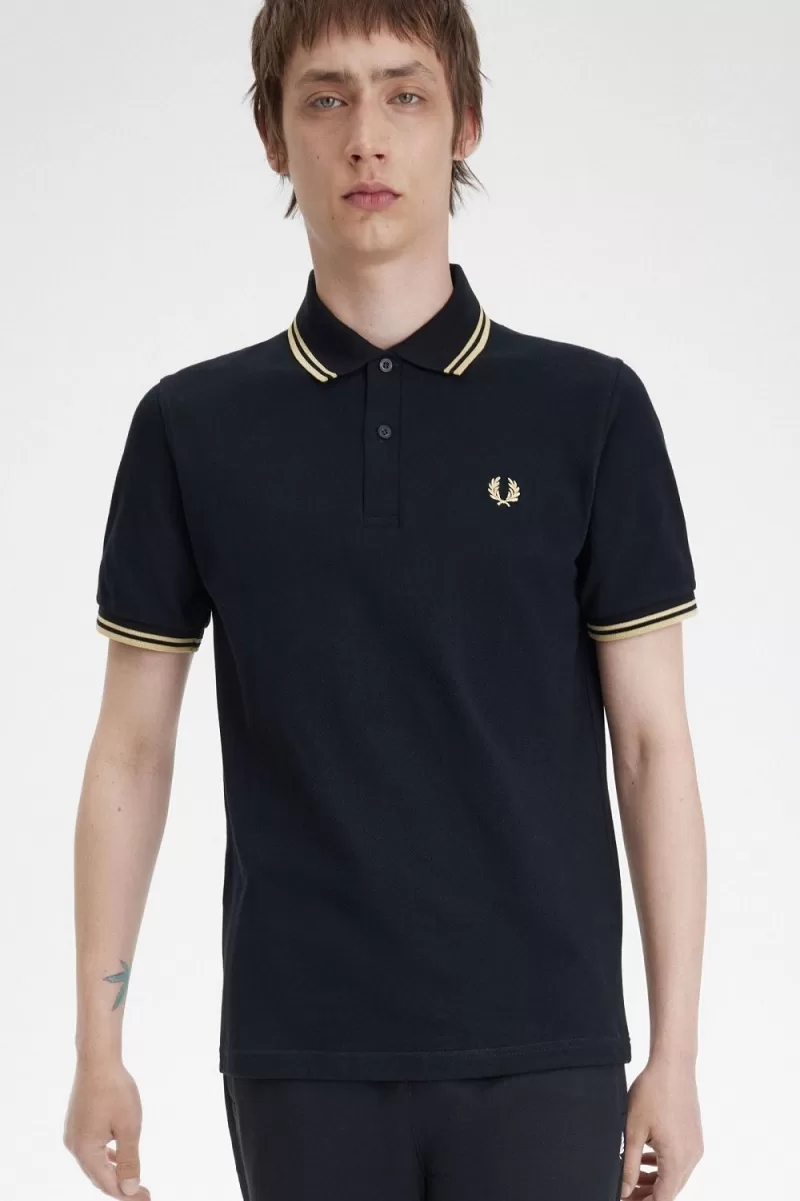 Fred Perry Tokyo M12 Men’s Polo Shirt Black Champagne JEGLQ1950
