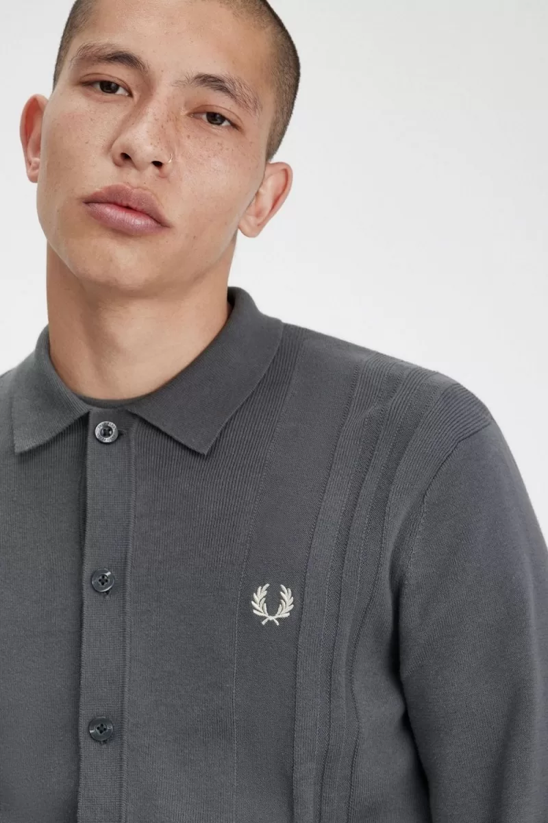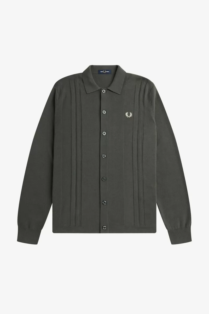 Fred Perry Button Through Knitted Men’s Shirt Field Green SZYBH7260