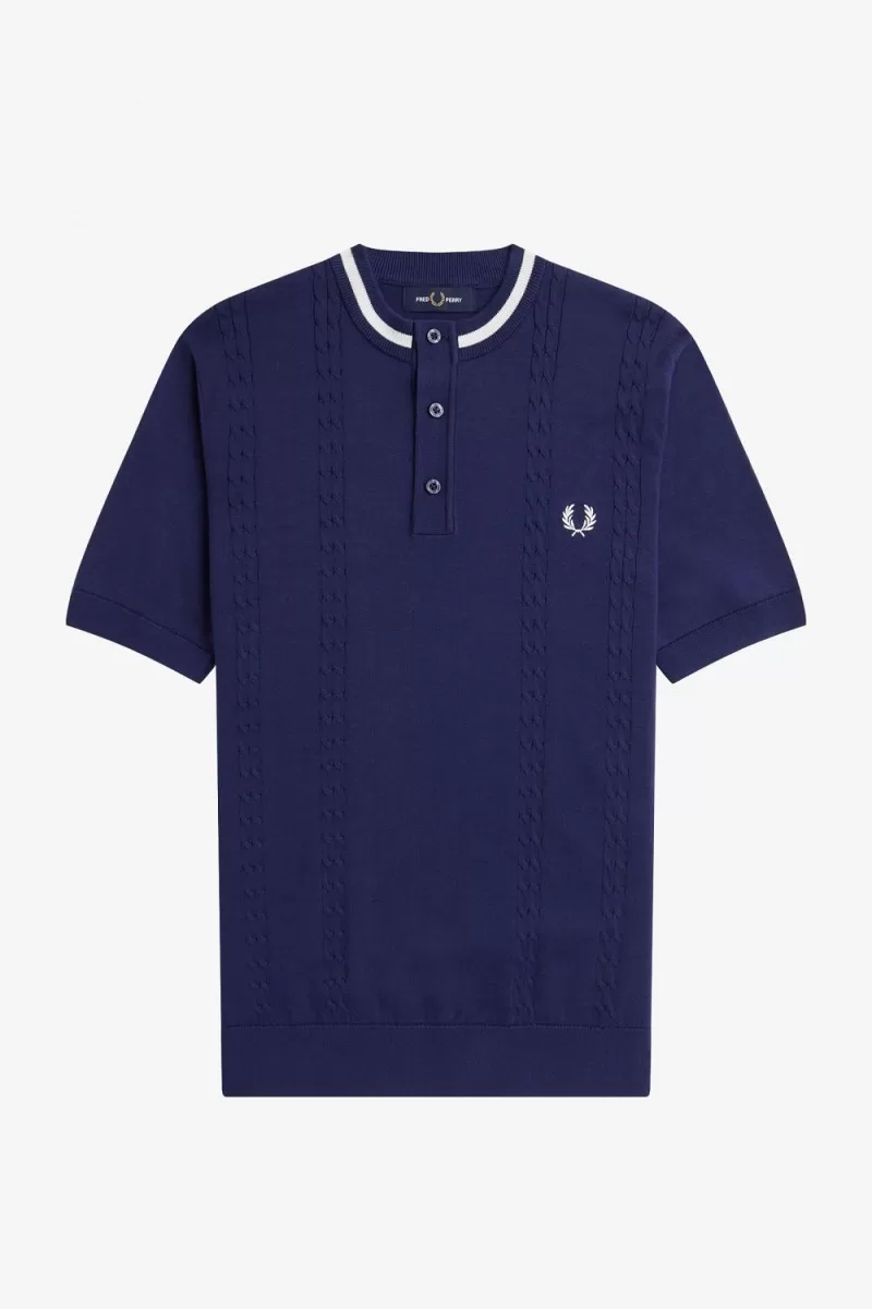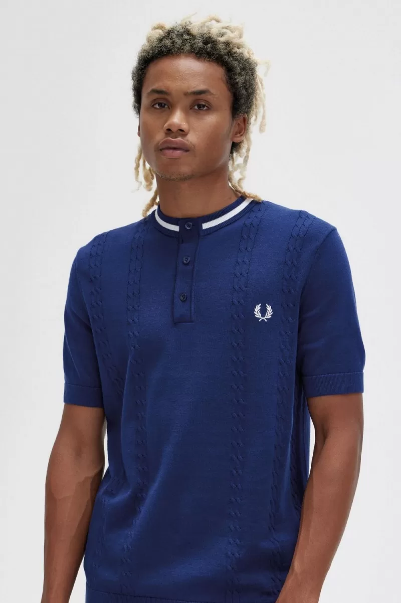 Fred Perry Cable Knit Henley Men’s Shirt French Navy AFQXV7036