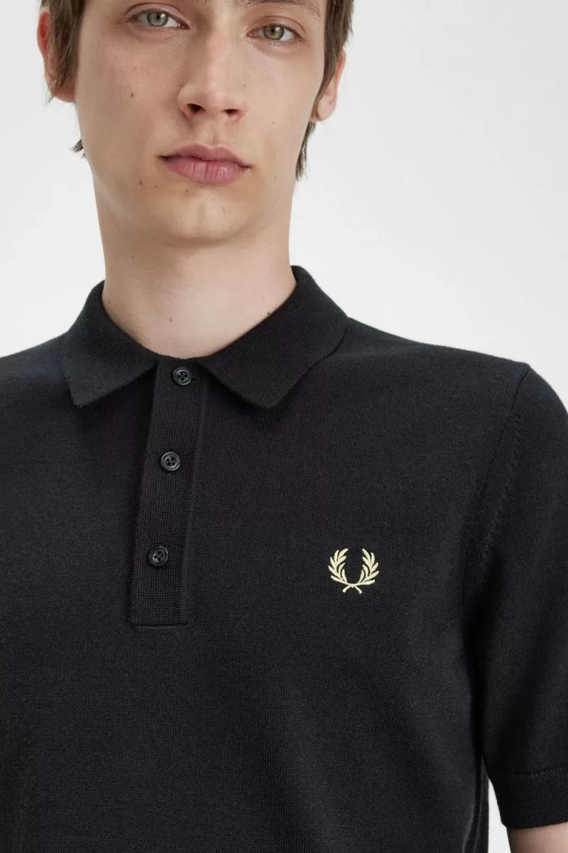 Fred Perry Classic Knitted Men’s Shirt Black BQWXV2831