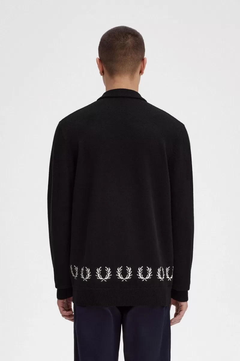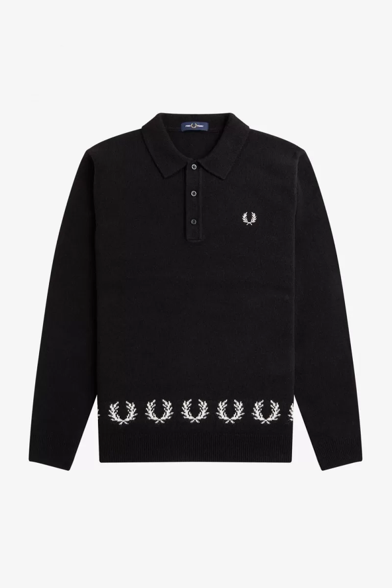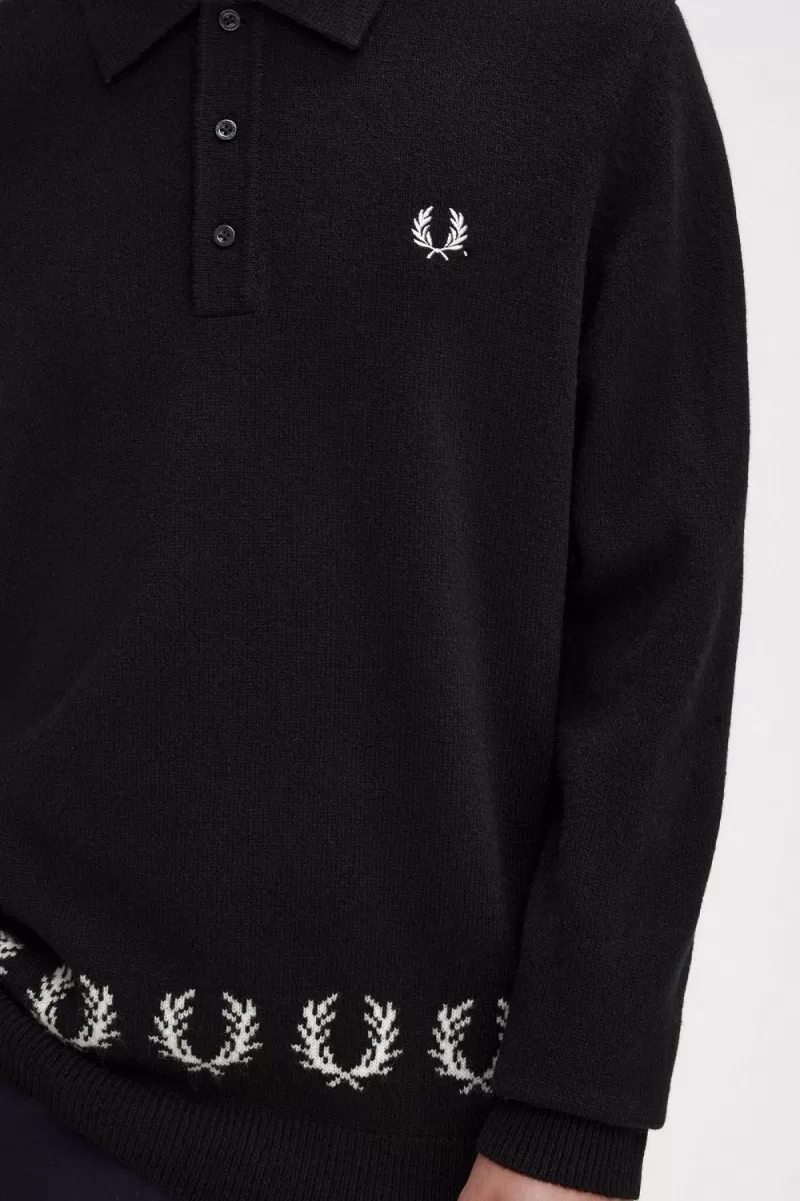 Fred Perry Laurel Wreath Trim Knitted Men’s Shirt Black YXOZF2481