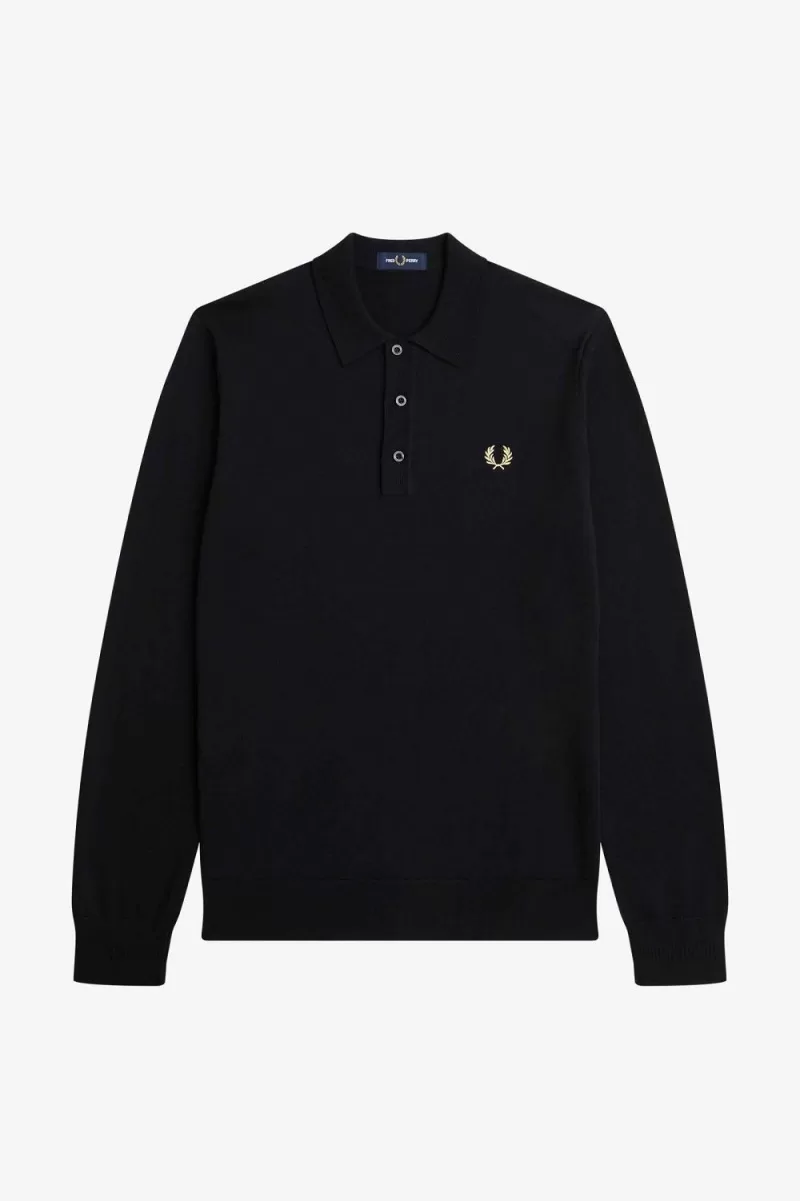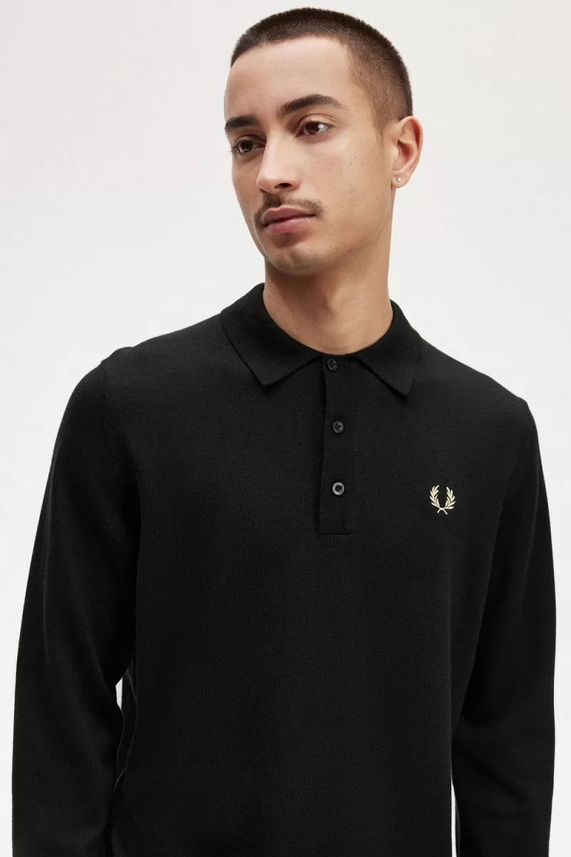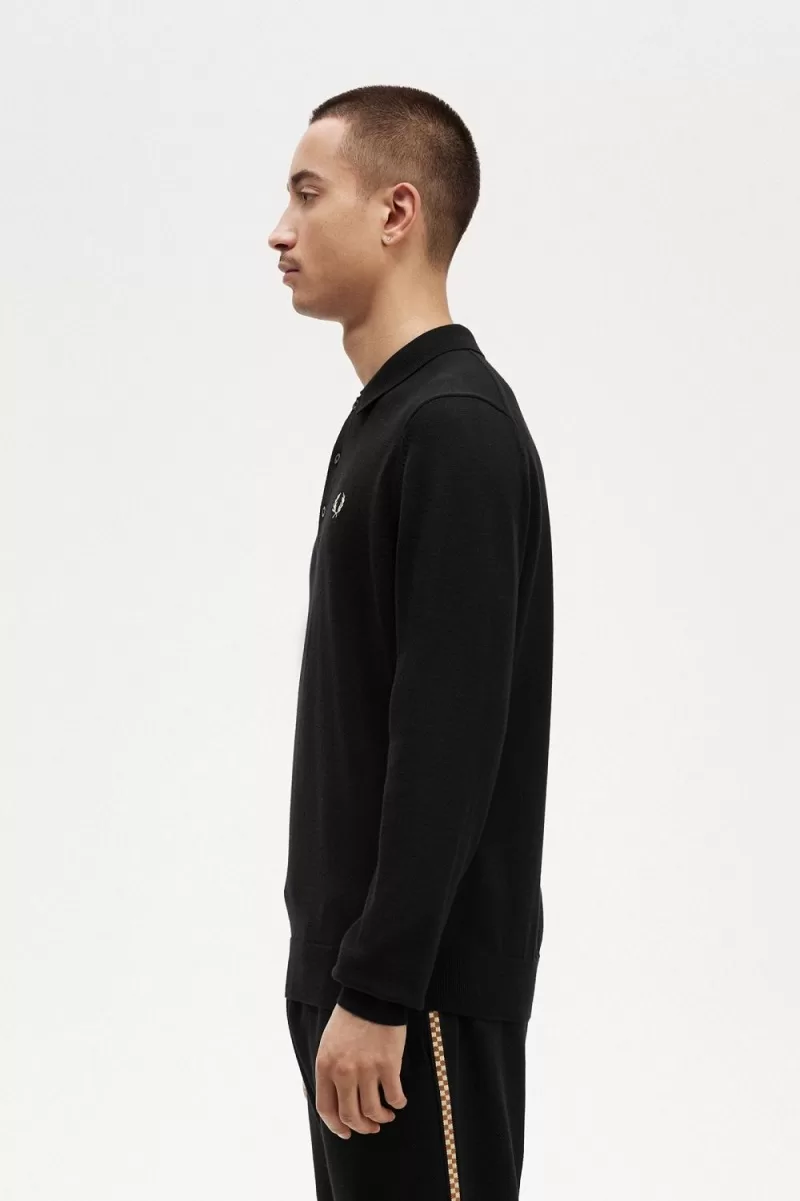 Fred Perry Long Sleeve Knitted Men’s Shirt Black BYQNH9106