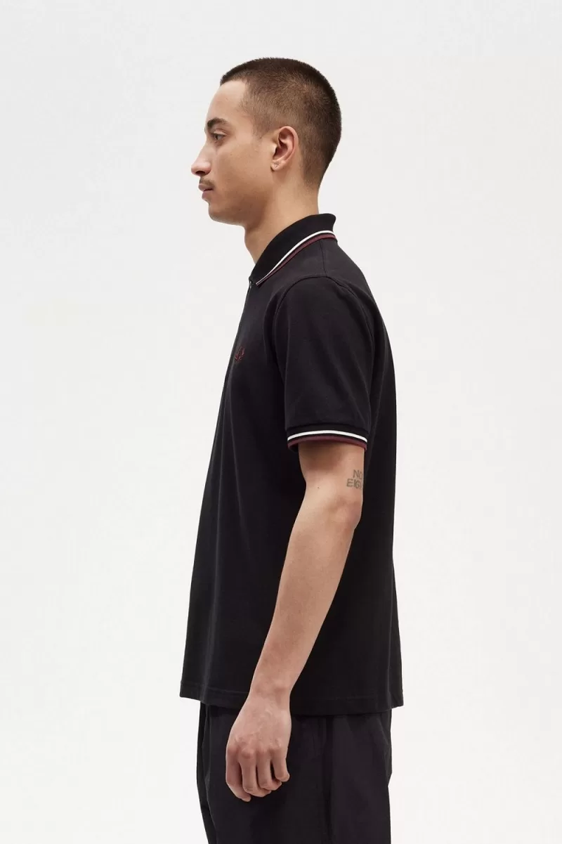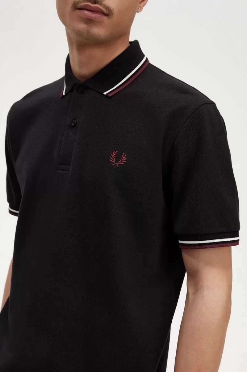 Fred Perry M12 Men’s Shirt Black Beige Oxblood UFDBN4275