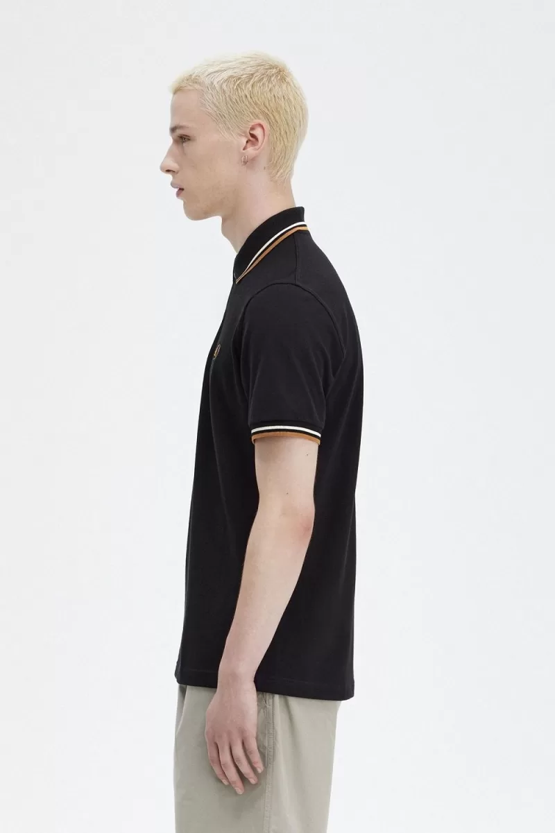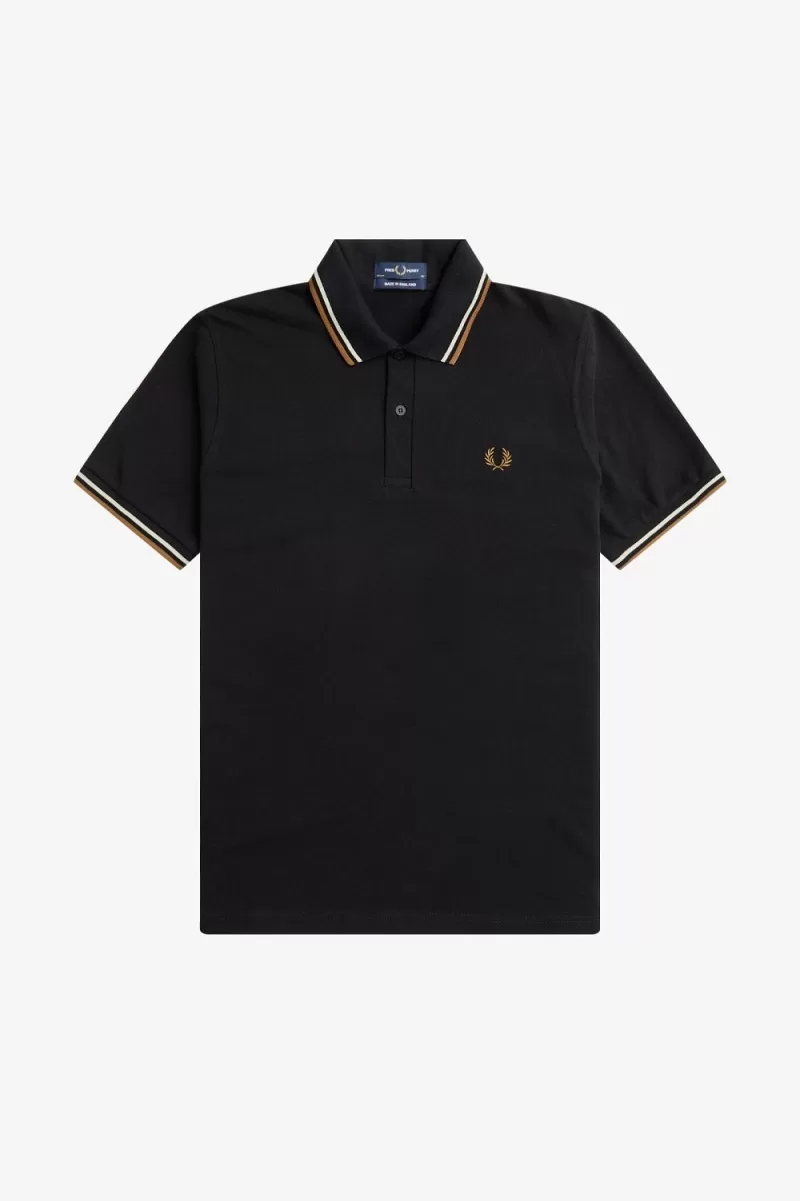 Fred Perry M12 Men’s Shirt Black Oatmeal Dark Coffee WDLSY4976