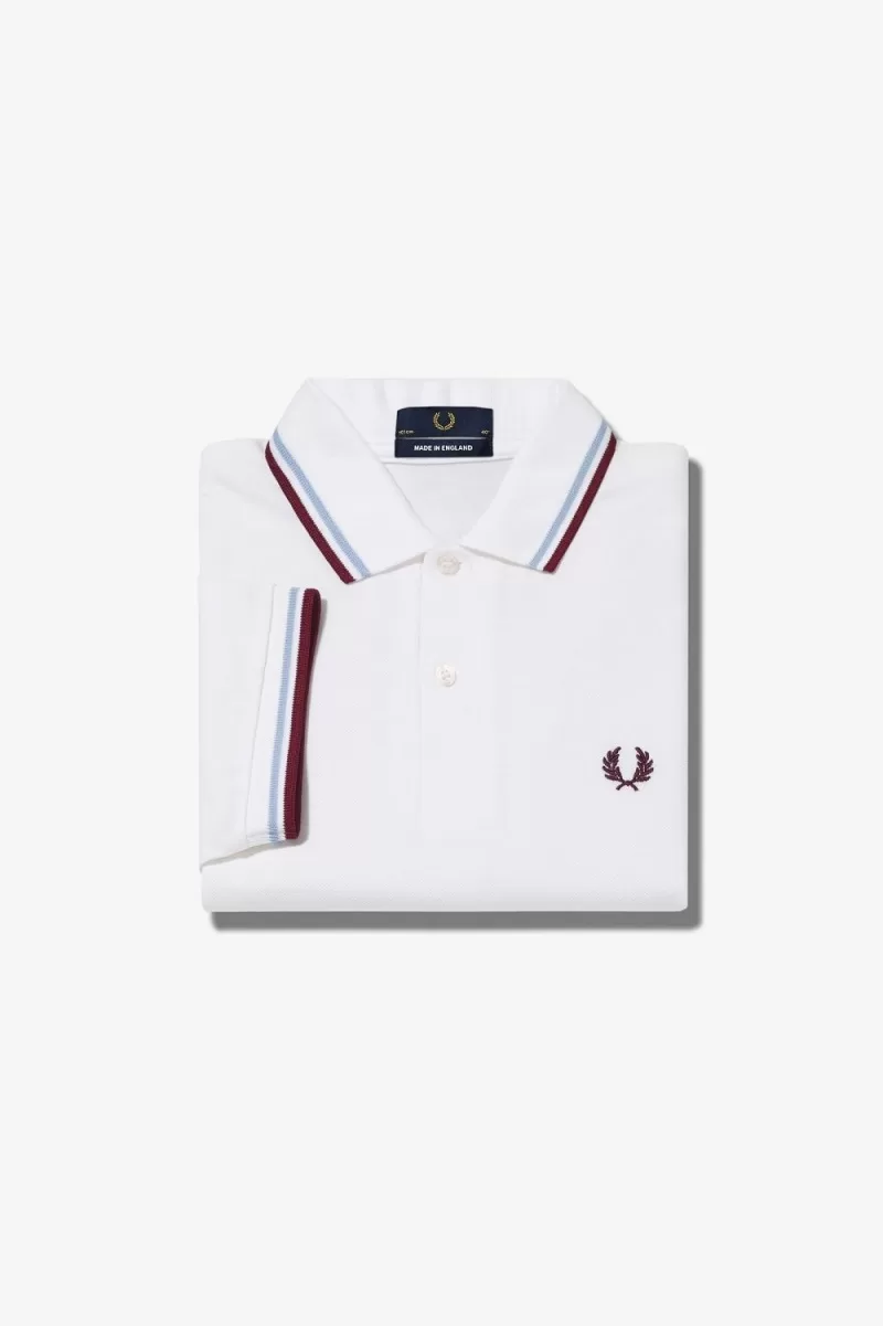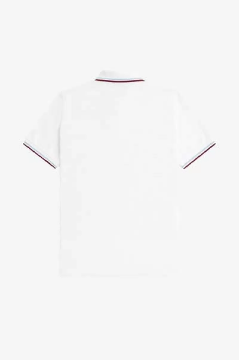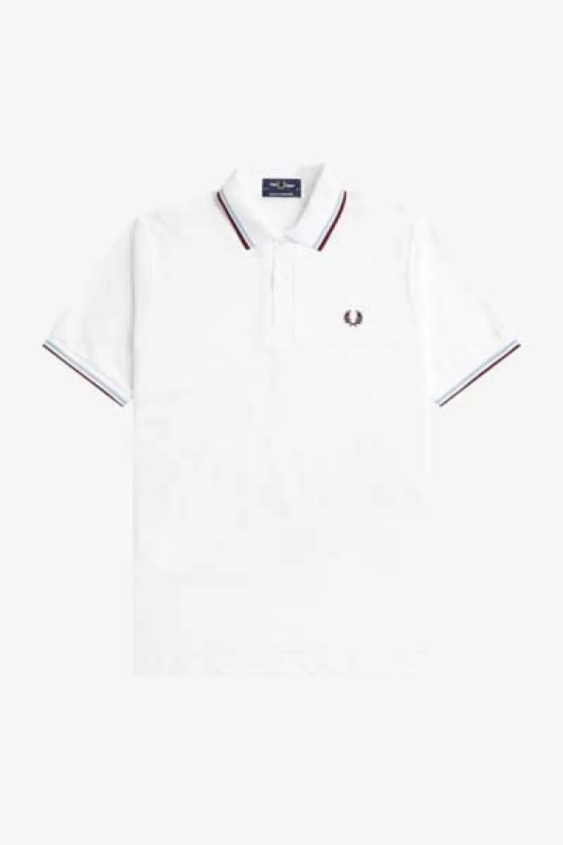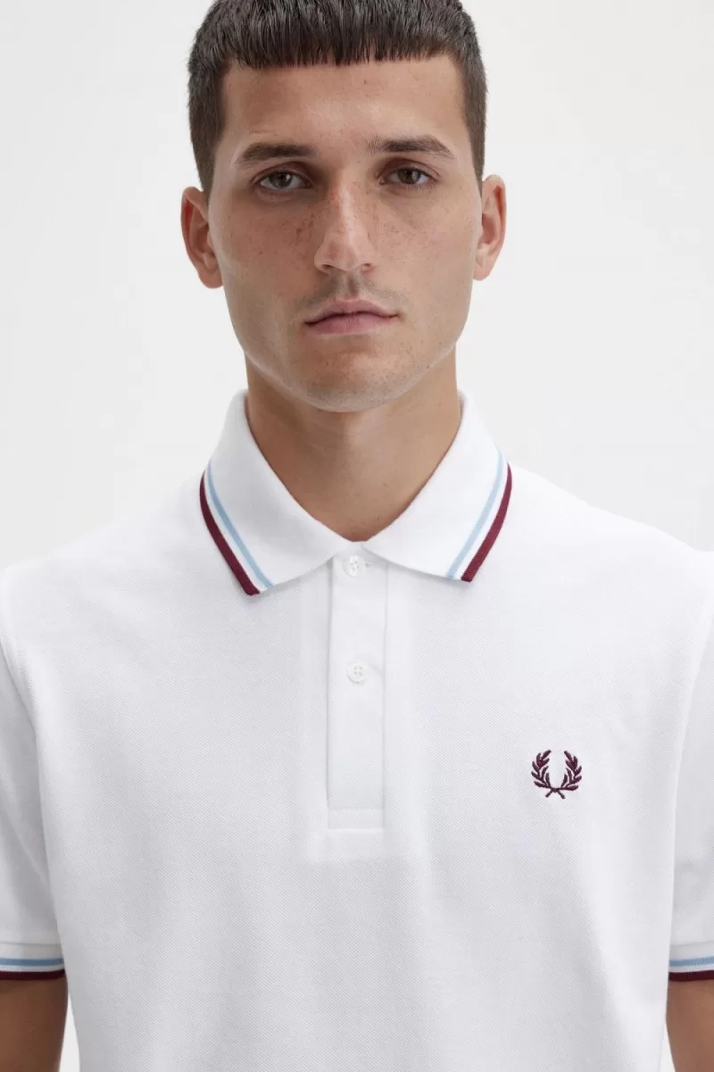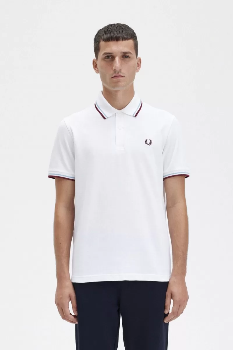 Fred Perry M12 Men’s Shirt White Aqua Maroon TOFPB0971
