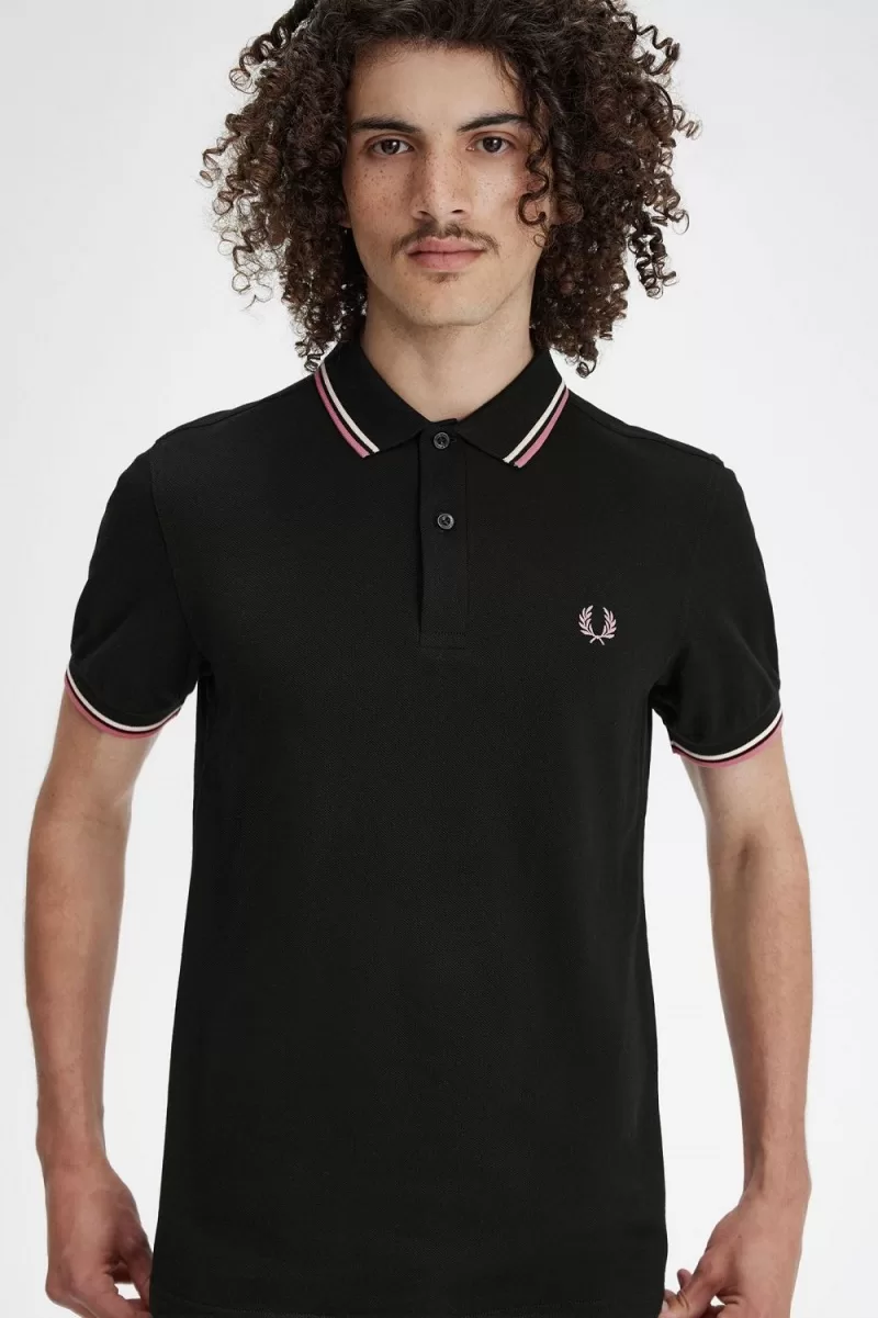 Fred Perry M3600 Men’s Shirt Black Beige Dusty Rose Pink UKCIJ7931