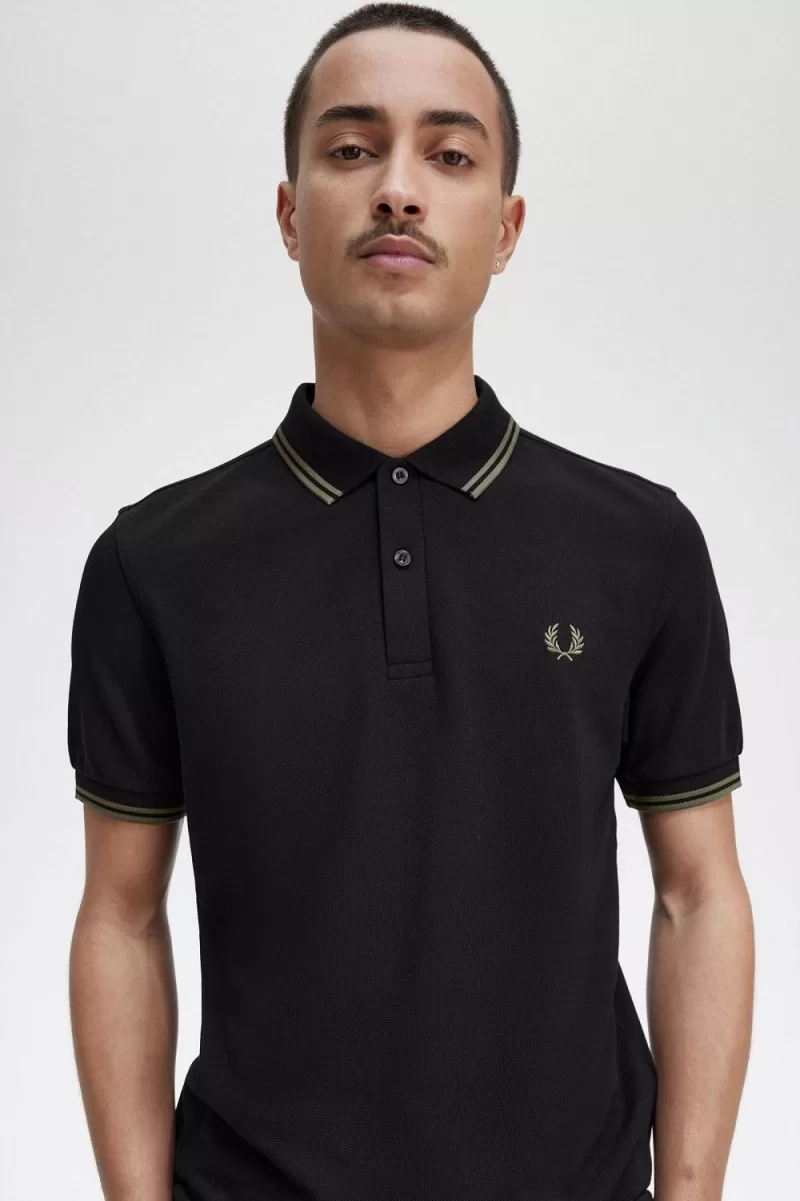 Fred Perry M3600 Men’s Shirt Black Field Green DICVS2965