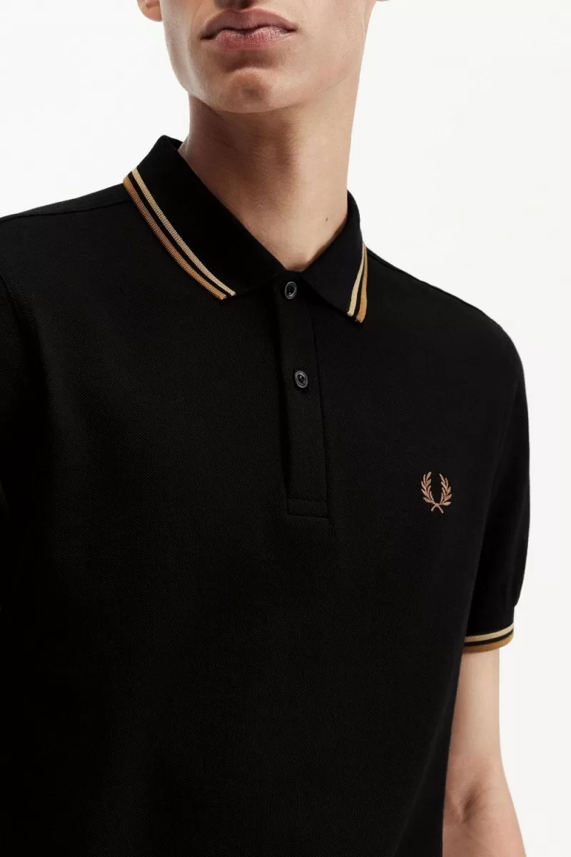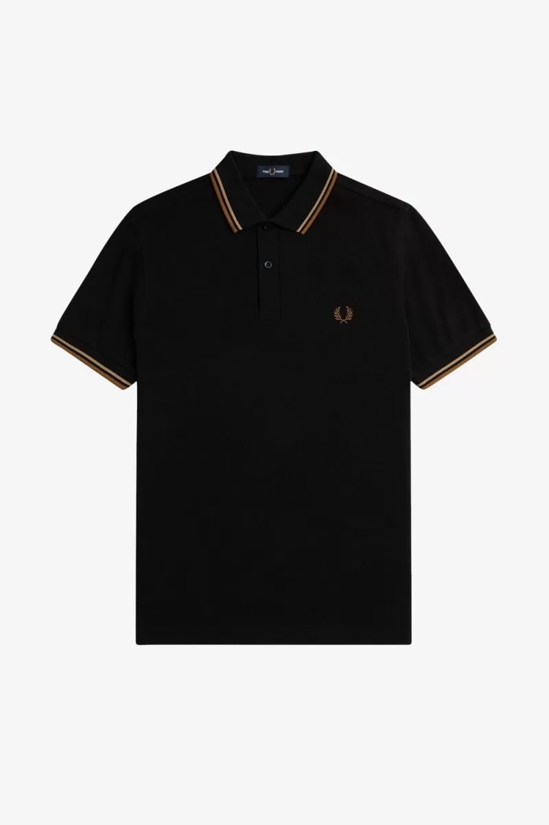Fred Perry M3600 Men’s Shirt Black Green Brown ZNMUV7054