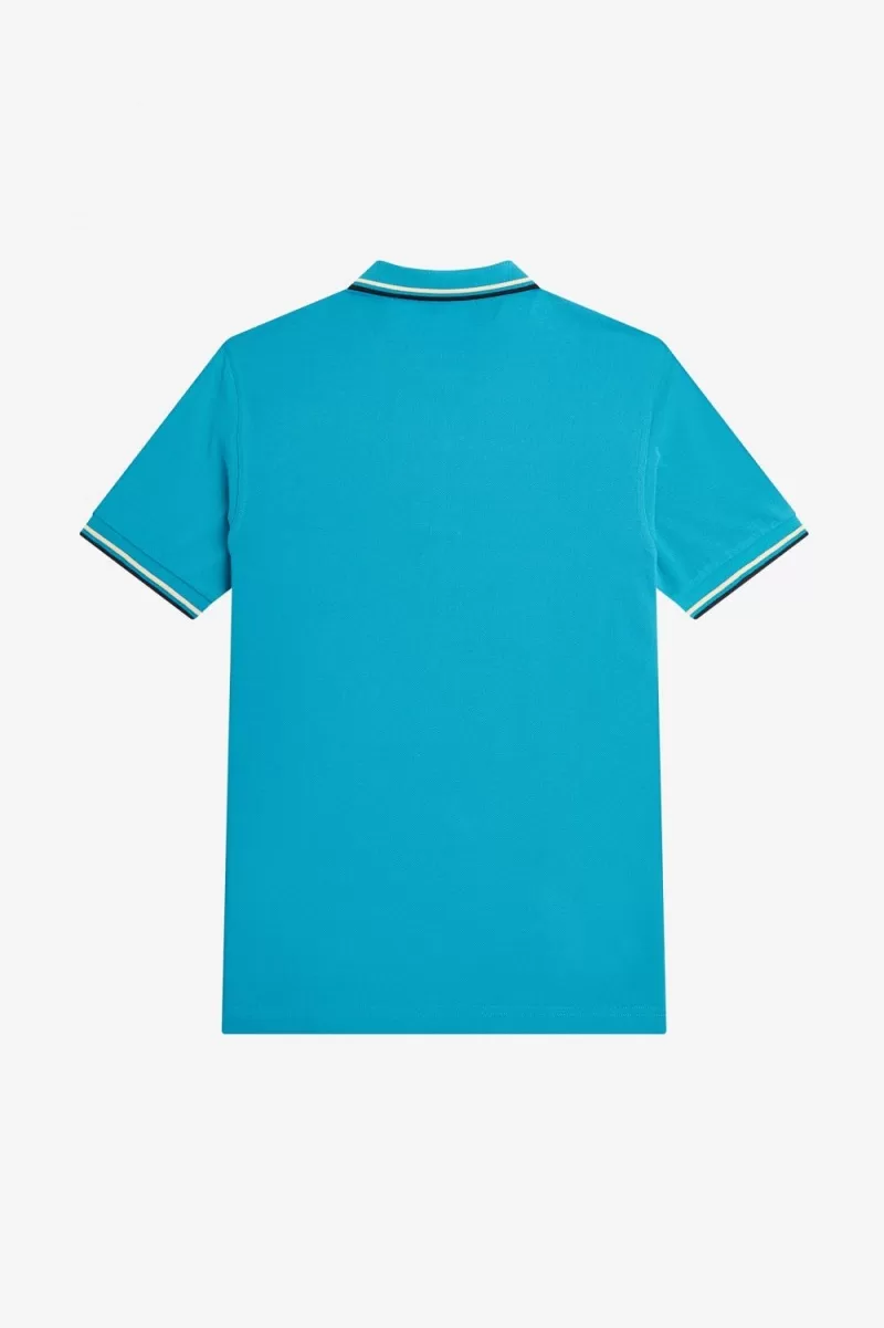 Fred Perry M3600 Men’s Shirt Cyber Blue Aqua Cream Black RIBAJ2439
