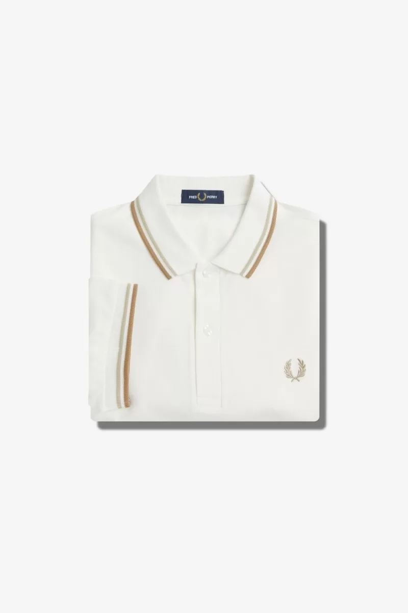 Fred Perry M3600 Men’s Shirt Snow White Oatmeal Green FERGX5814
