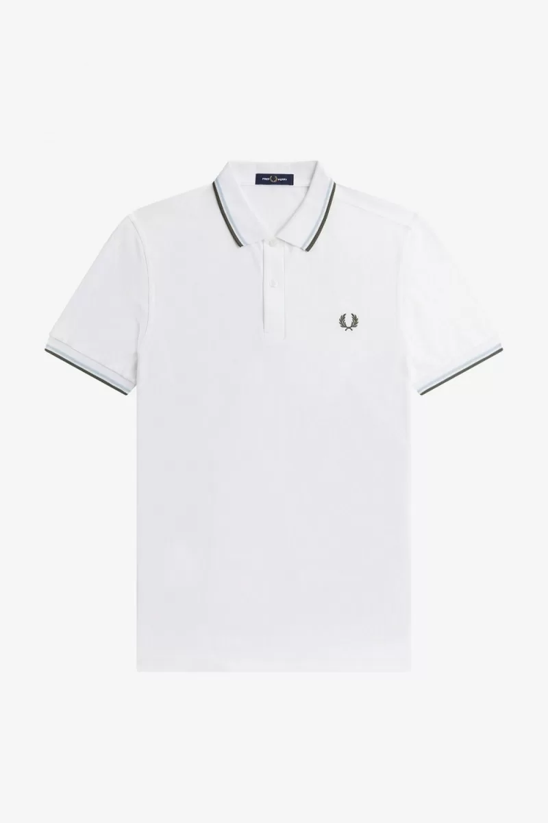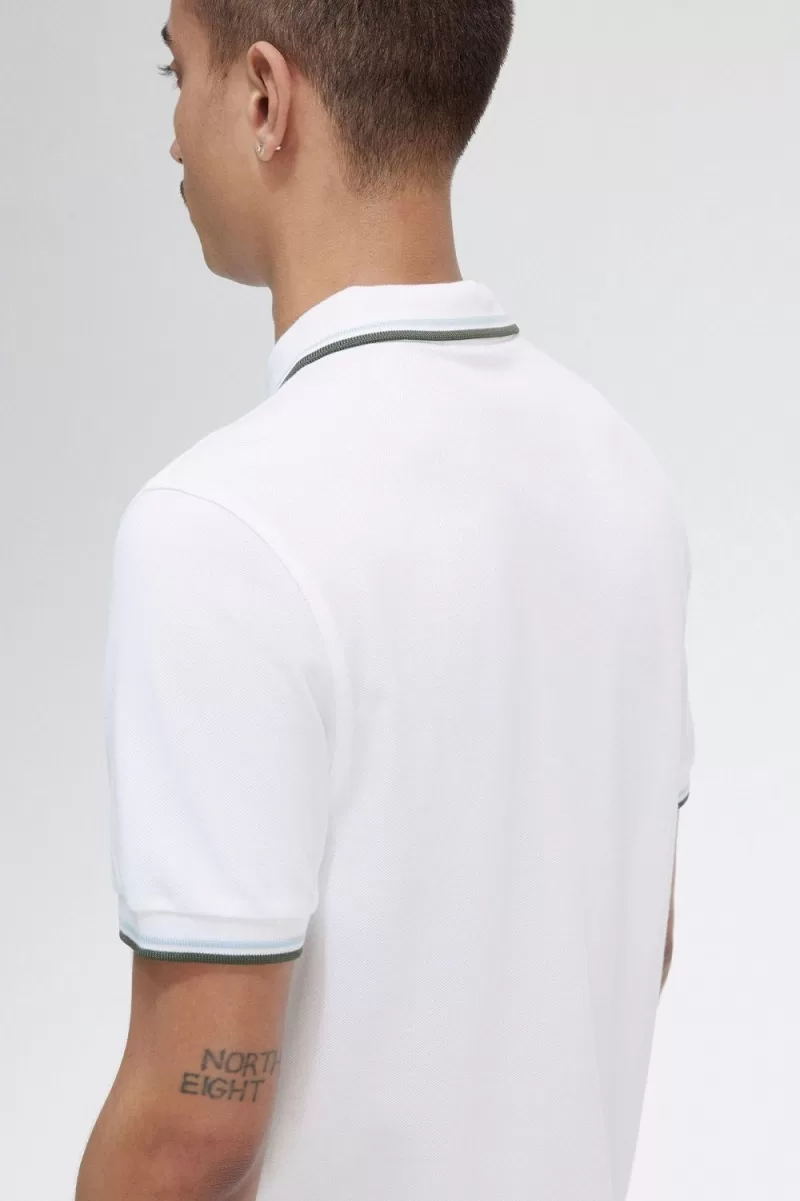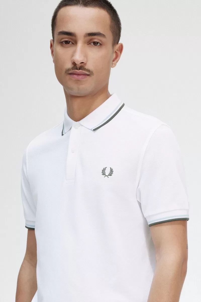 Fred Perry M3600 Men’s Shirt White Light Aqua Field Green AISQH0238