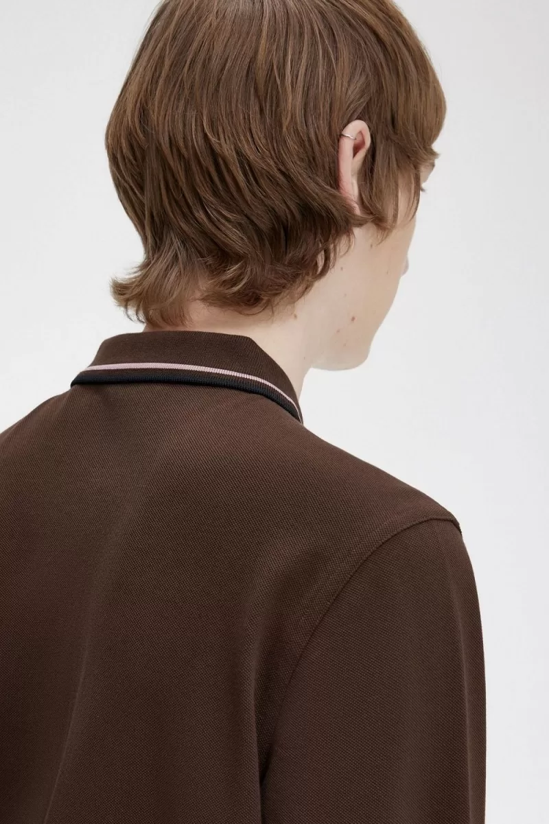 Fred Perry M3636 Men’s Shirt Burnt Tobacco Dark Pink Black HUTBL0698