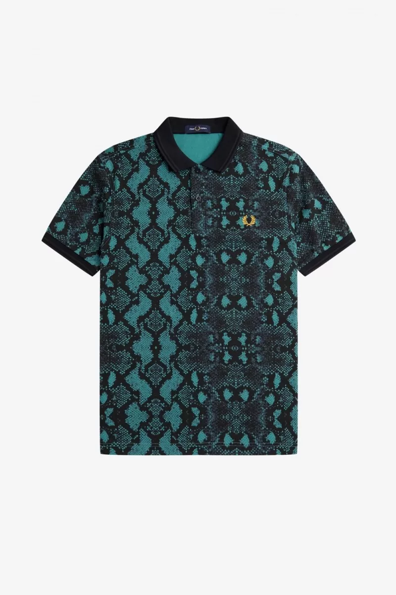 Home Men Clothing Shirt Fred Perry Snake Print Men’s Shirt Deep Mint CZIDJ2815