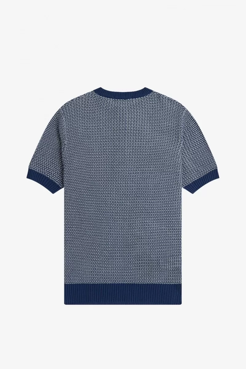 Fred Perry Two Colour Texture Knit Men’s Shirt French Navy EXSBO6342