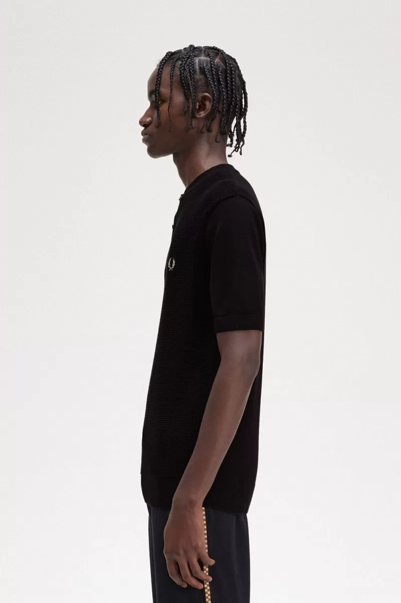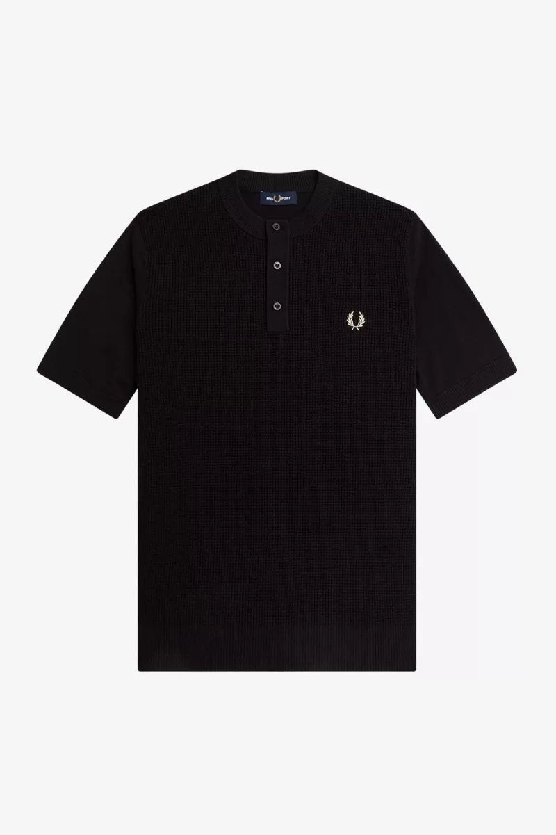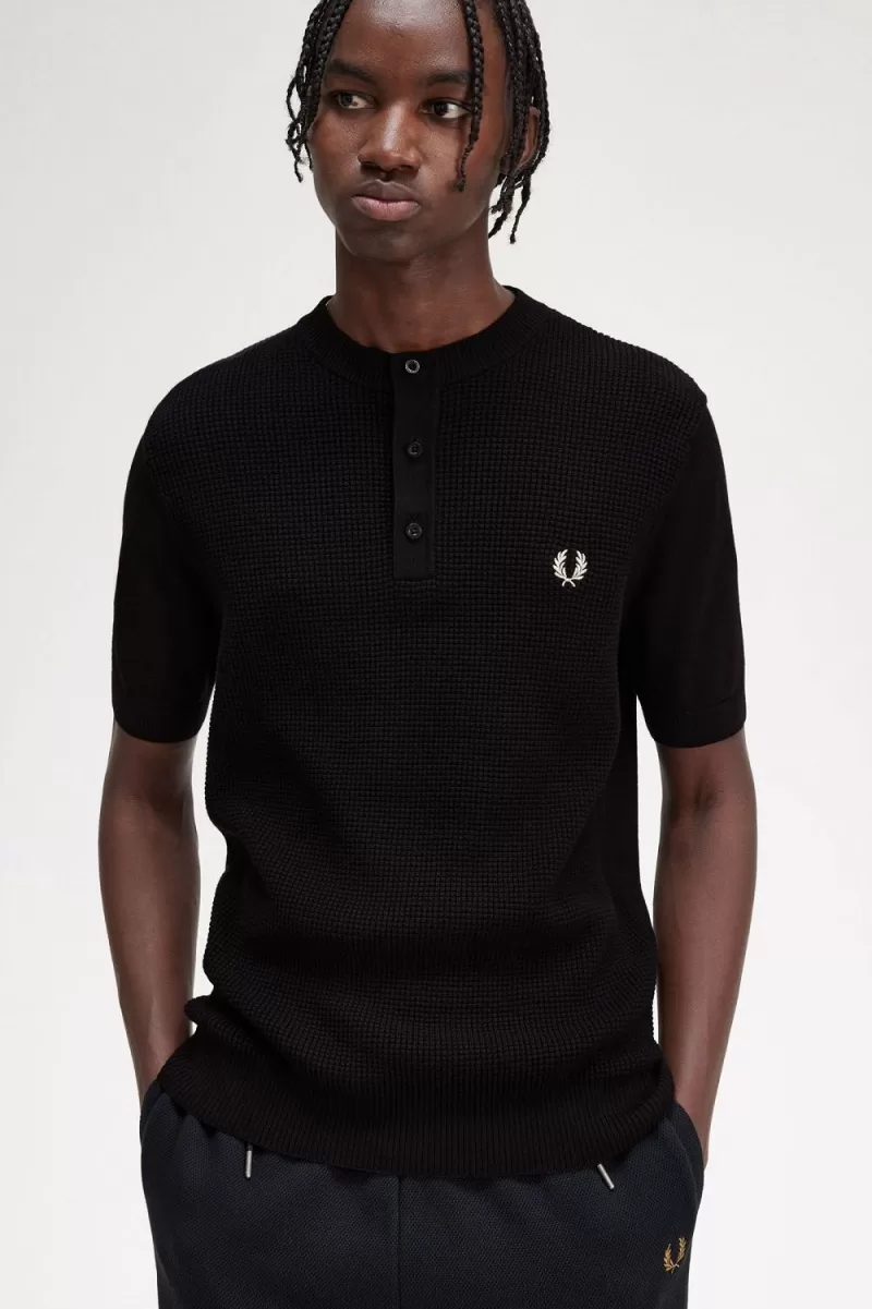Fred Perry Waffle Stitch Henley Men’s Shirt Black VCAMJ2359