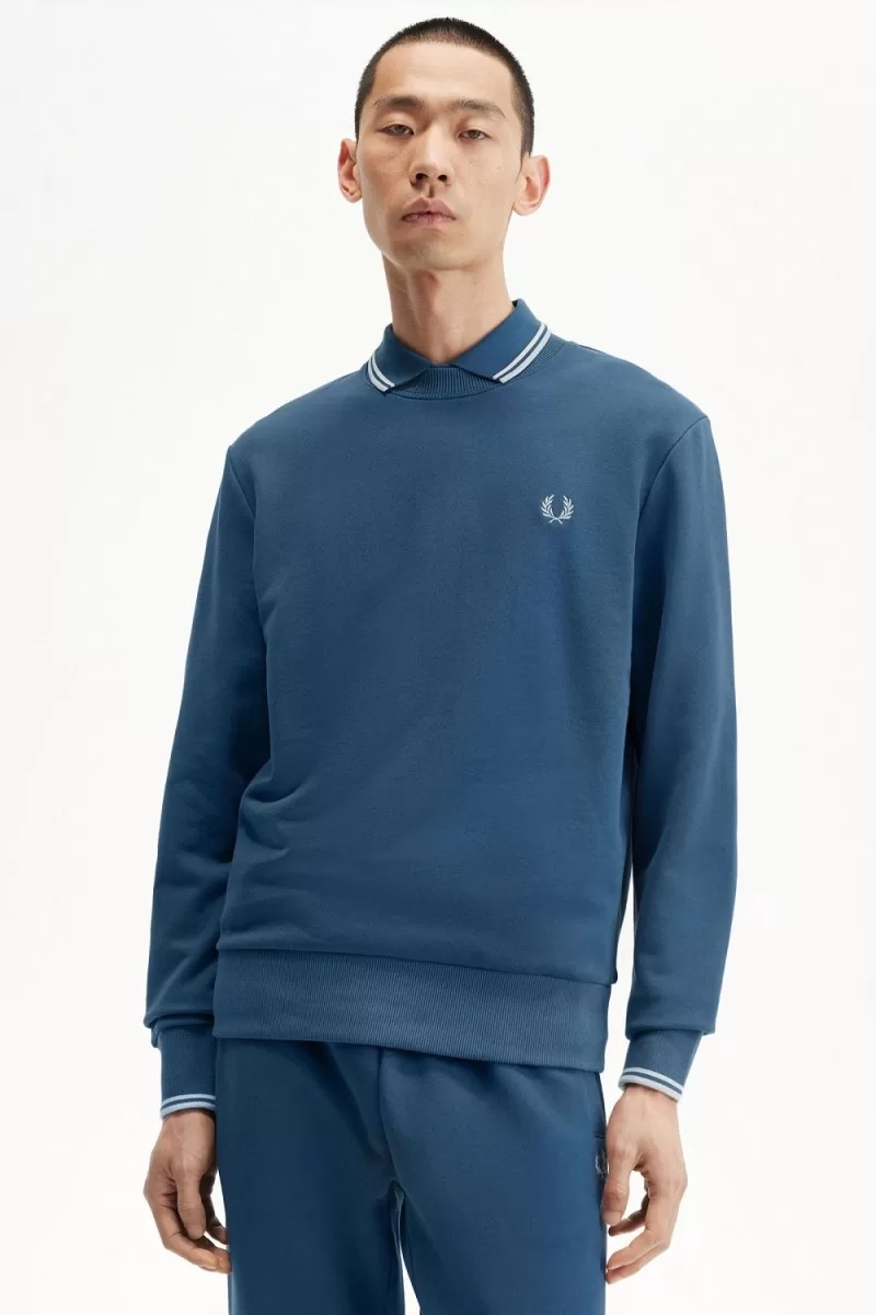 Fred Perry Crew Neck Men’s Sweatshirts Midnight Blue Light Aqua PTOXD1045