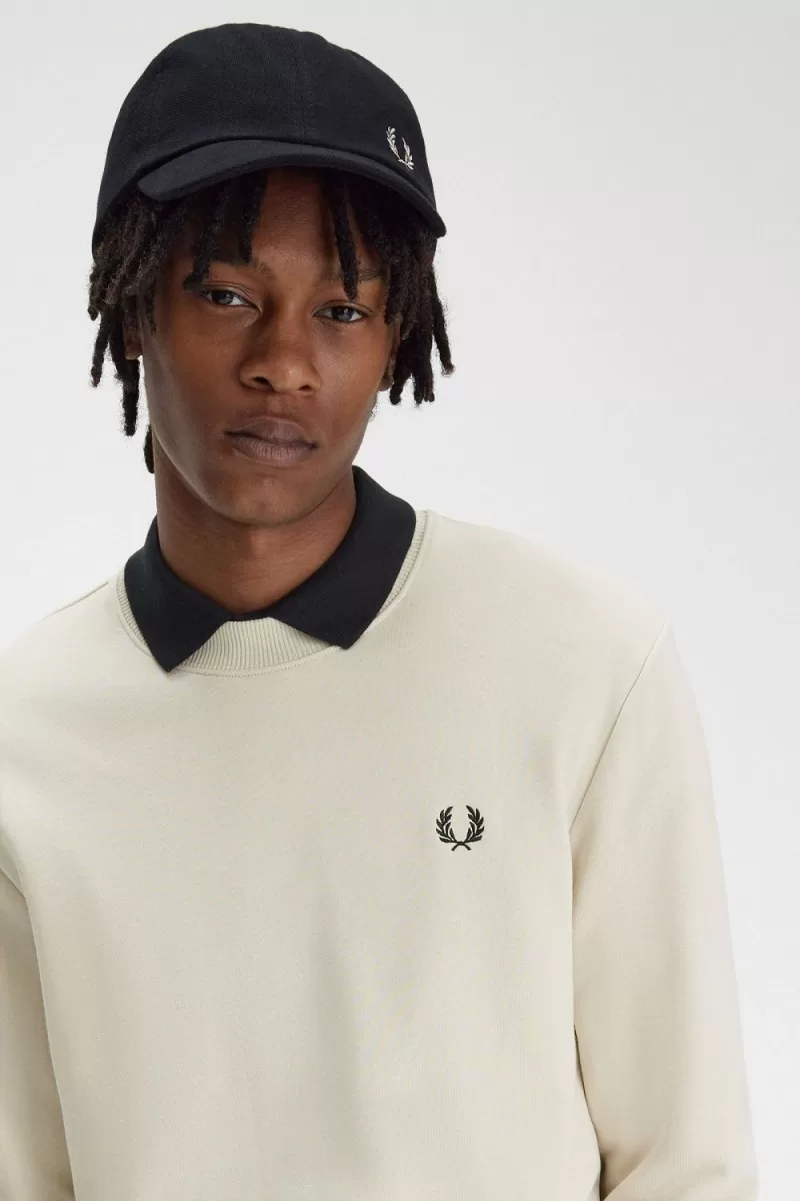 Fred Perry Crew Neck Men’s Sweatshirts Oatmeal Black ABPMC0416