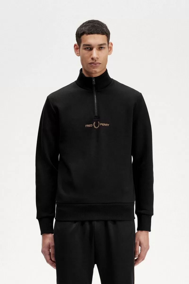 Home Men Clothing Sweatshirts Fred Perry Double Graphic Half Zip Men’s Sweatshirts Black ZUOBY5624