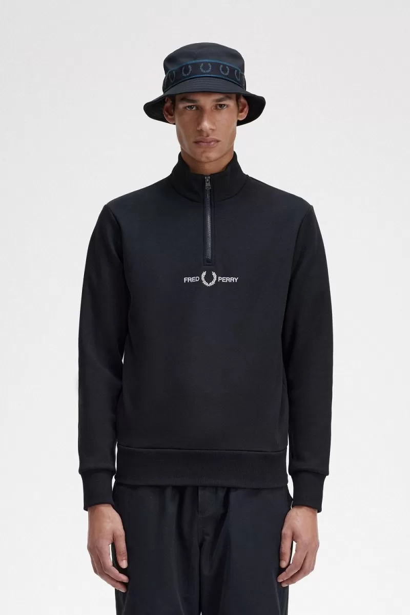 Fred Perry Embroidered Half Zip Men’s Sweatshirts Black FLMRD8015