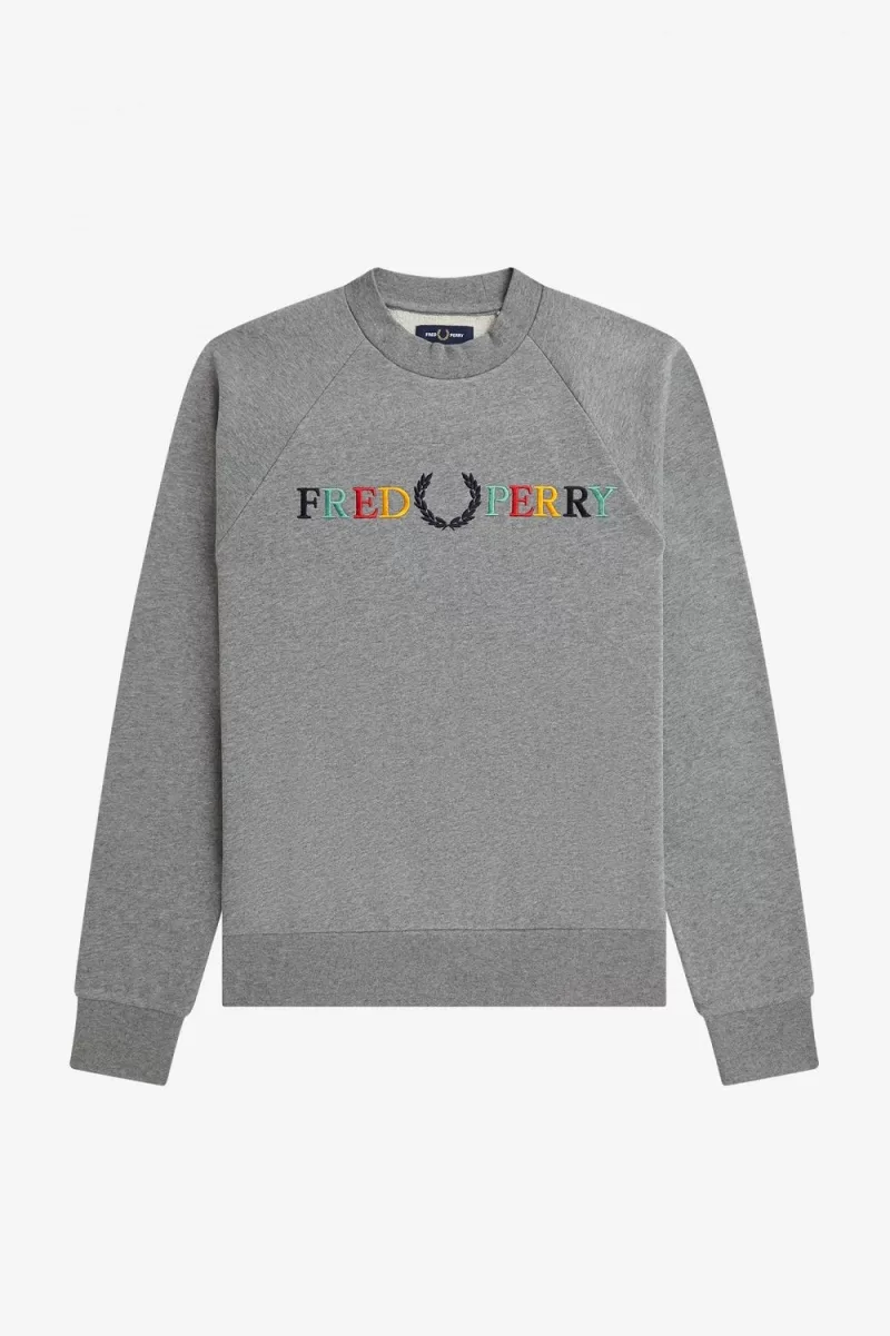 Fred Perry Embroidered Men’s Sweatshirts Grey Marl Ash Blue Black KQWXE7325