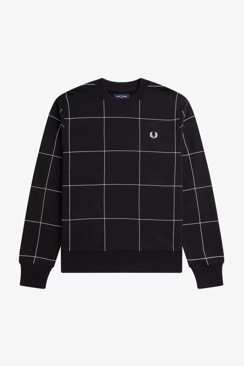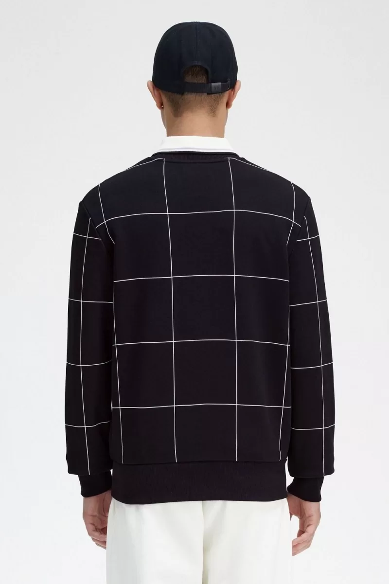 Fred Perry Grid Detail Men’s Sweatshirts Black RJFDA5273