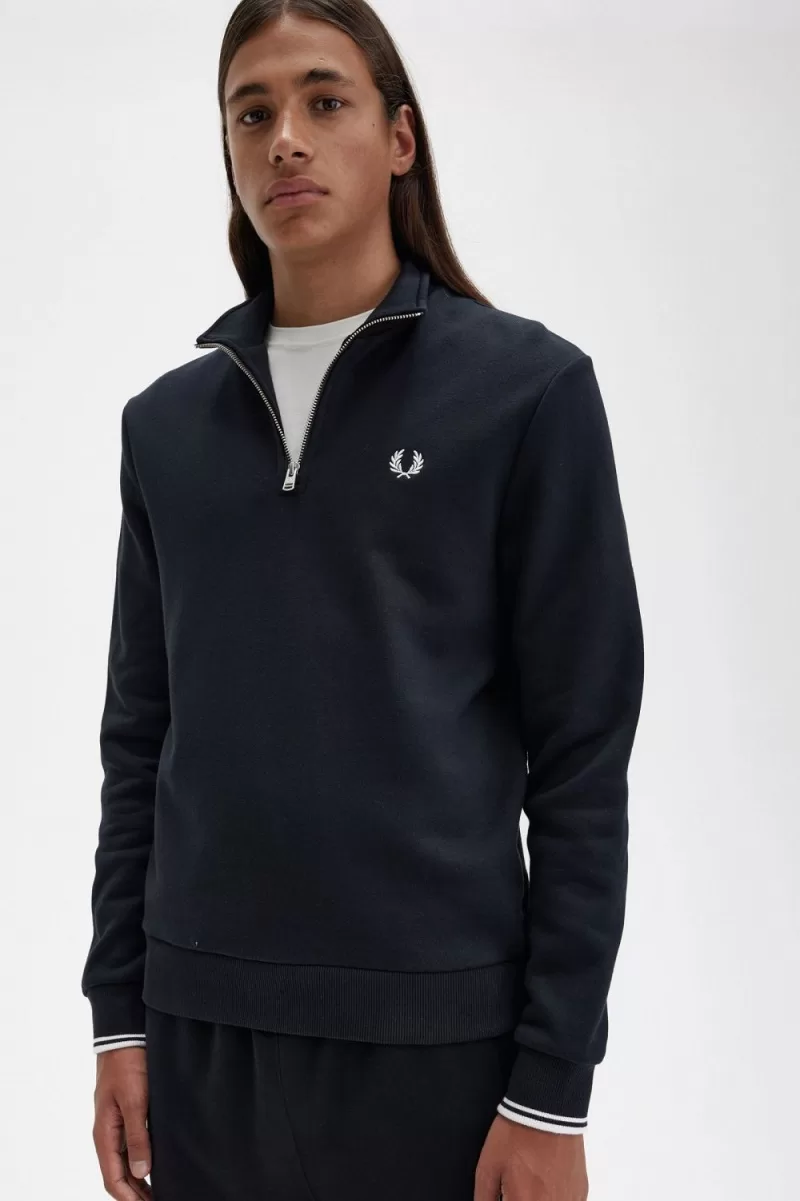 Fred Perry Half Zip Men’s Sweatshirts Black LXZRO6421