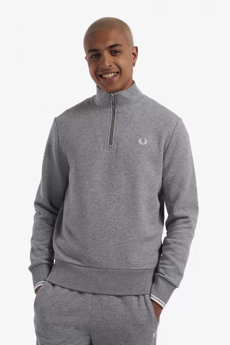 Fred Perry Half Zip Men’s Sweatshirts Grey QORWK5897