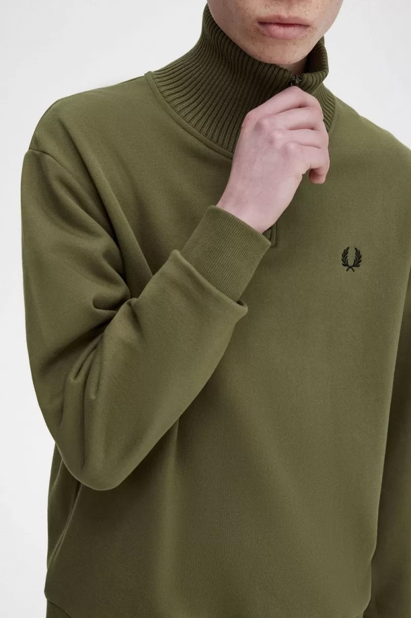 Fred Perry Knitted Trim Zip Neck Men’s Sweatshirts Uniform Green GUAML4570