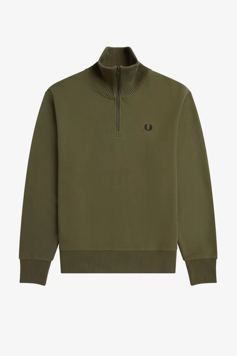 Home Men Clothing Sweatshirts Fred Perry Knitted Trim Zip Neck Men’s Sweatshirts Uniform Green GUAML4570