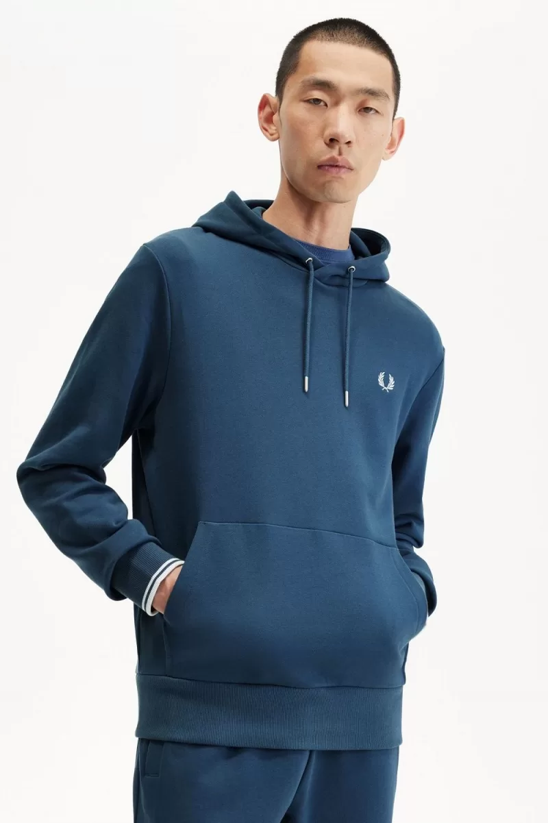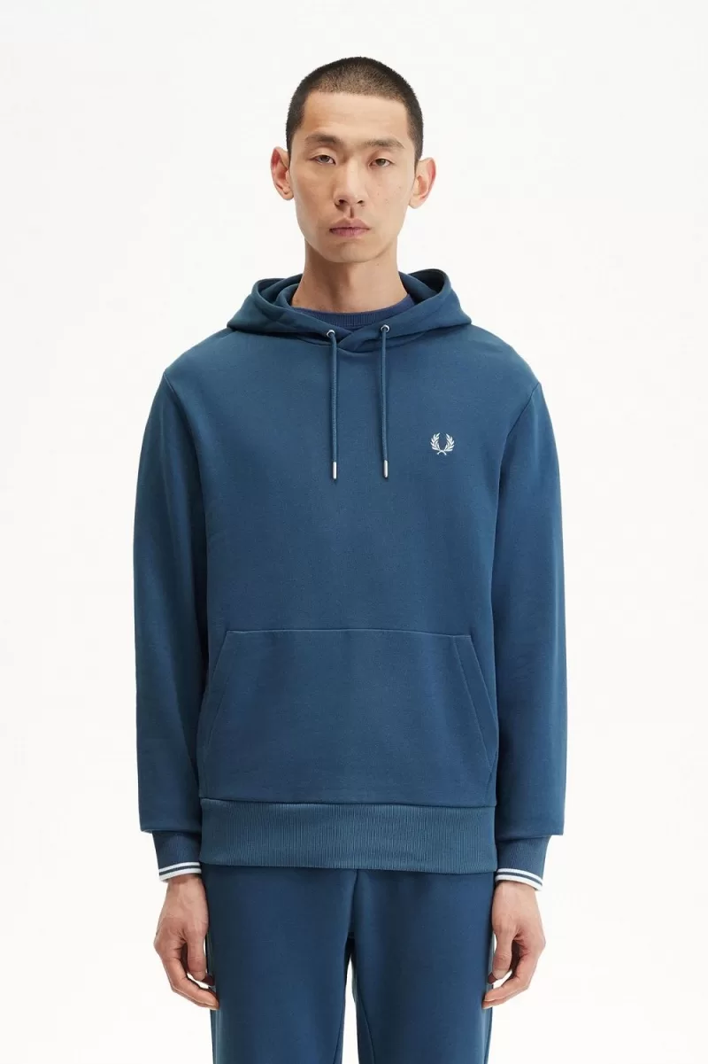 Fred Perry Tipped Hooded Men’s Sweatshirts Midnight Blue Light Aqua CMZLW3482
