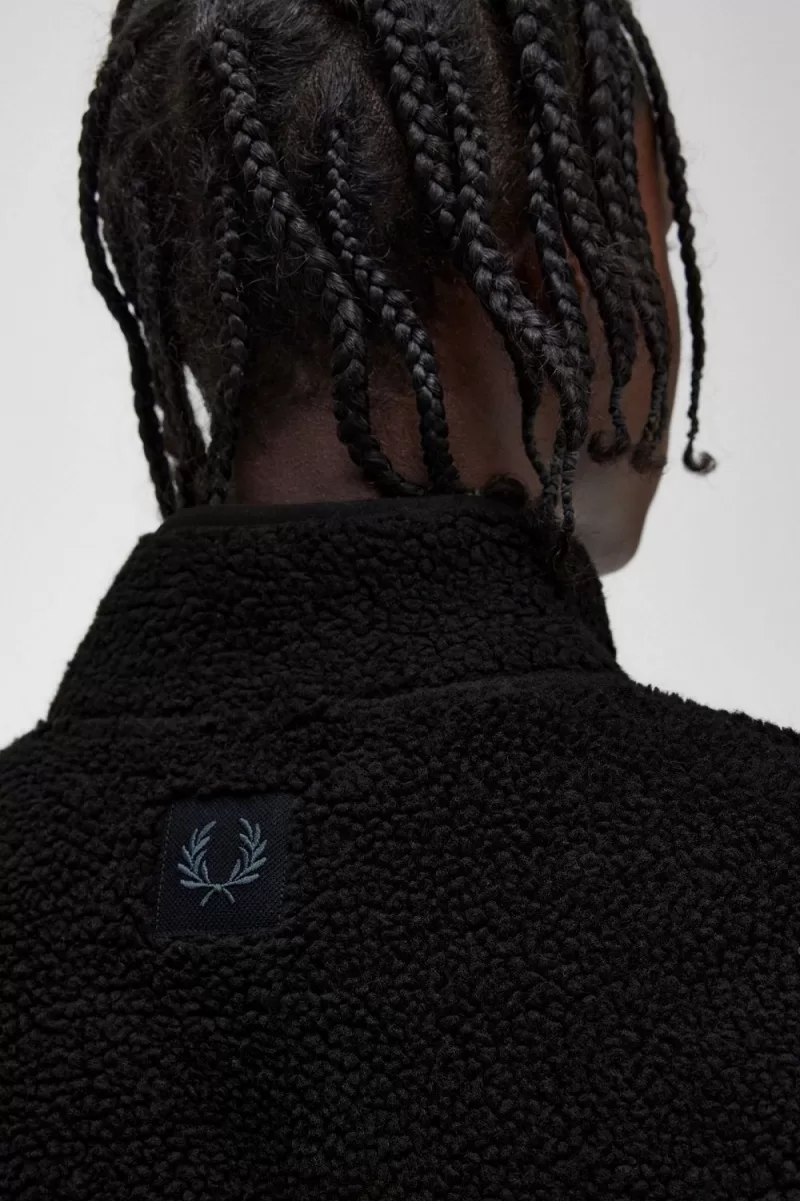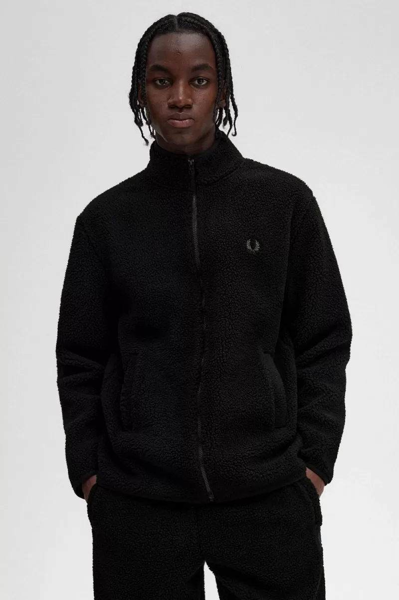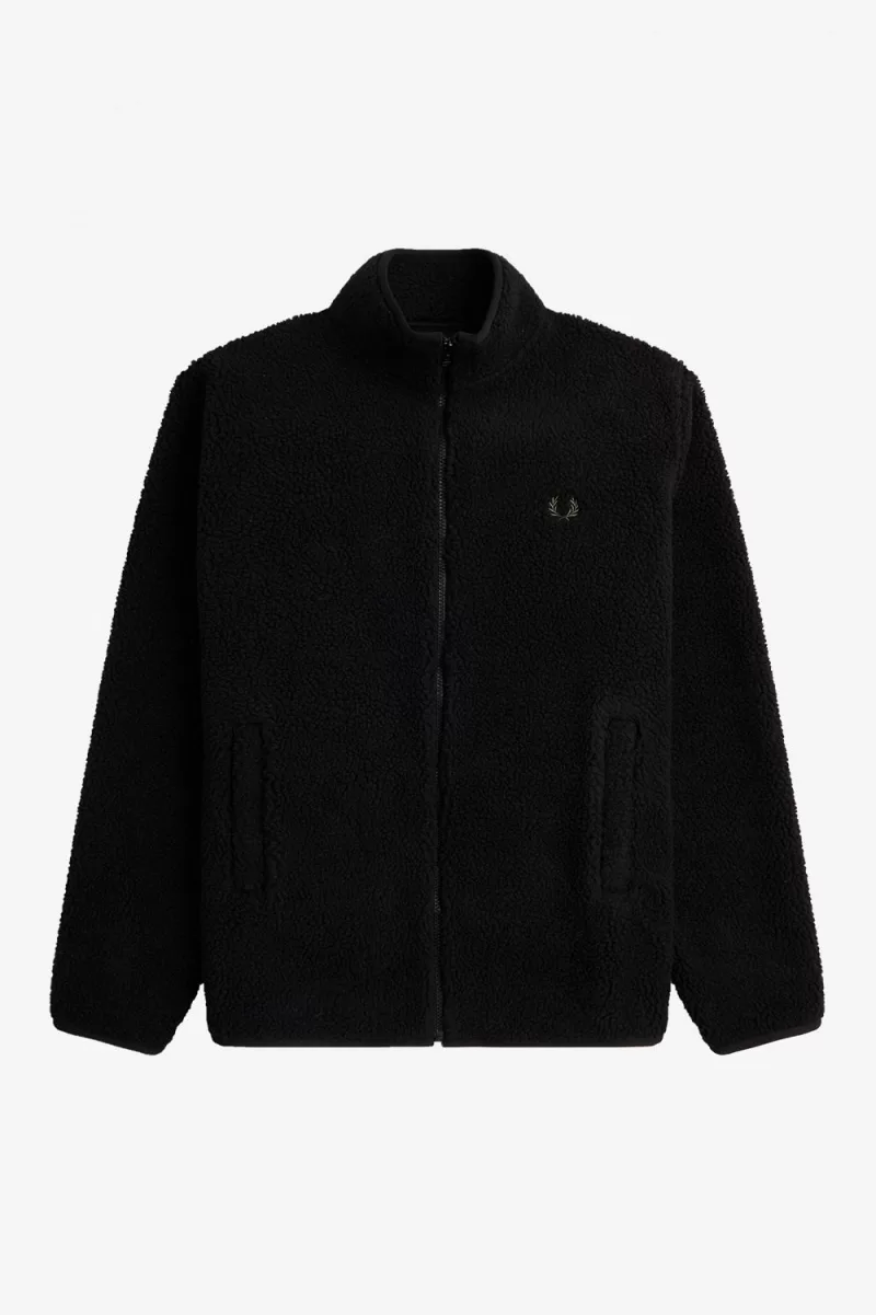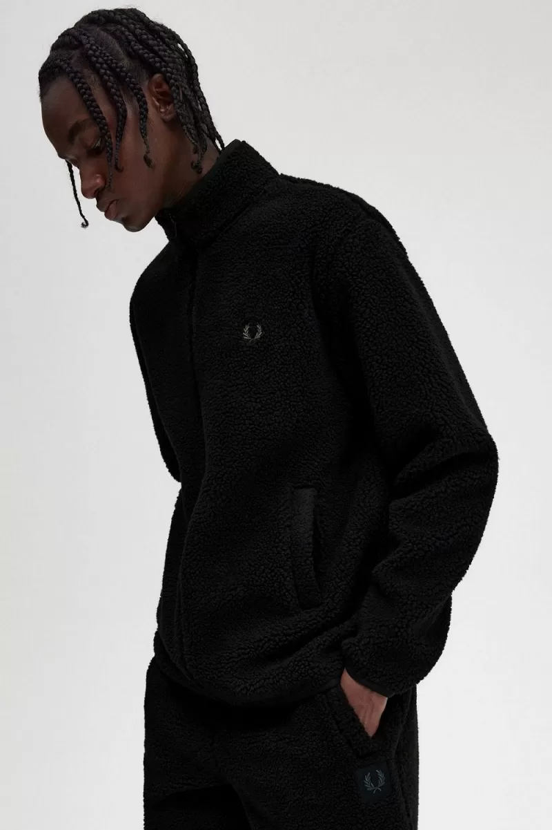 Fred Perry Zip Through Borg Fleece Men’s Sweatshirts Black VXKCW5983