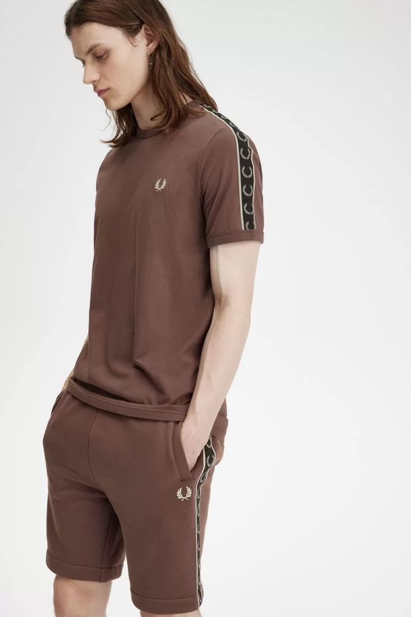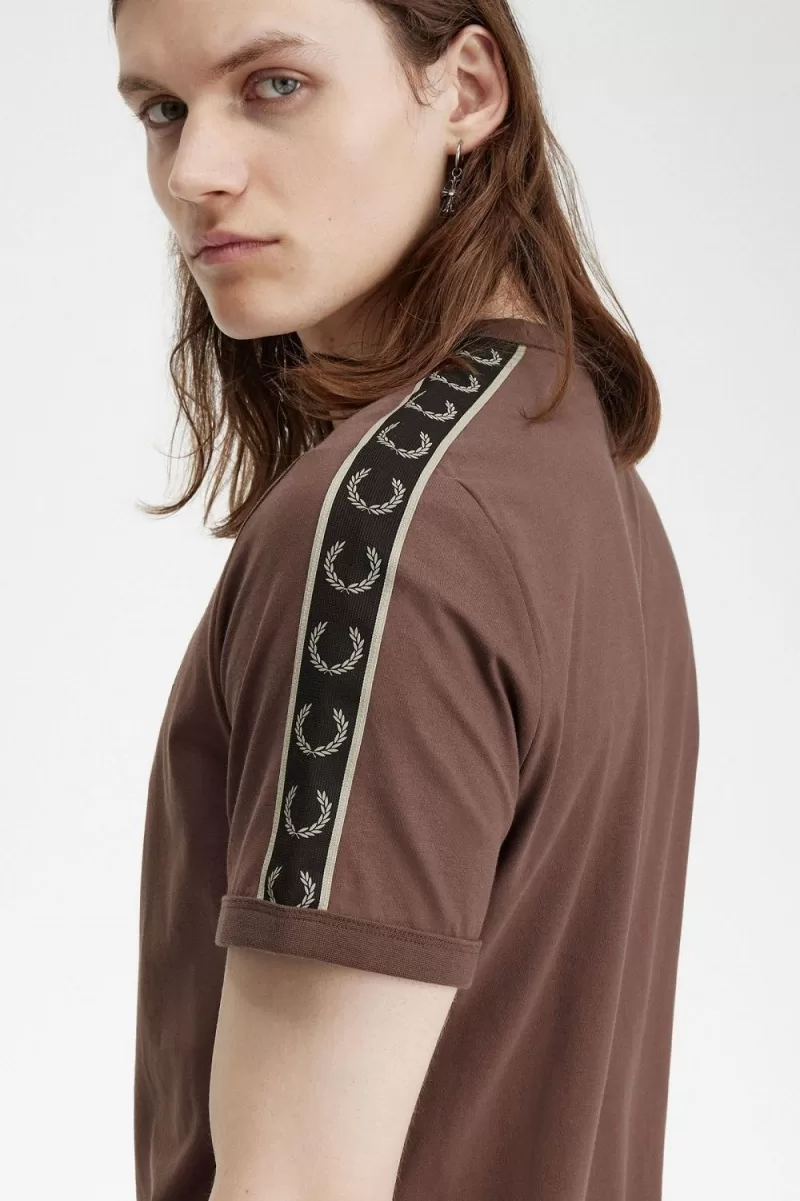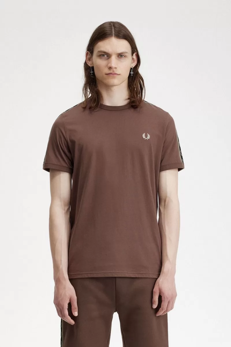 Fred Perry Contrast Tape Ringer Men’s T-Shirt Dark Red Warm Grey YJOEB7359